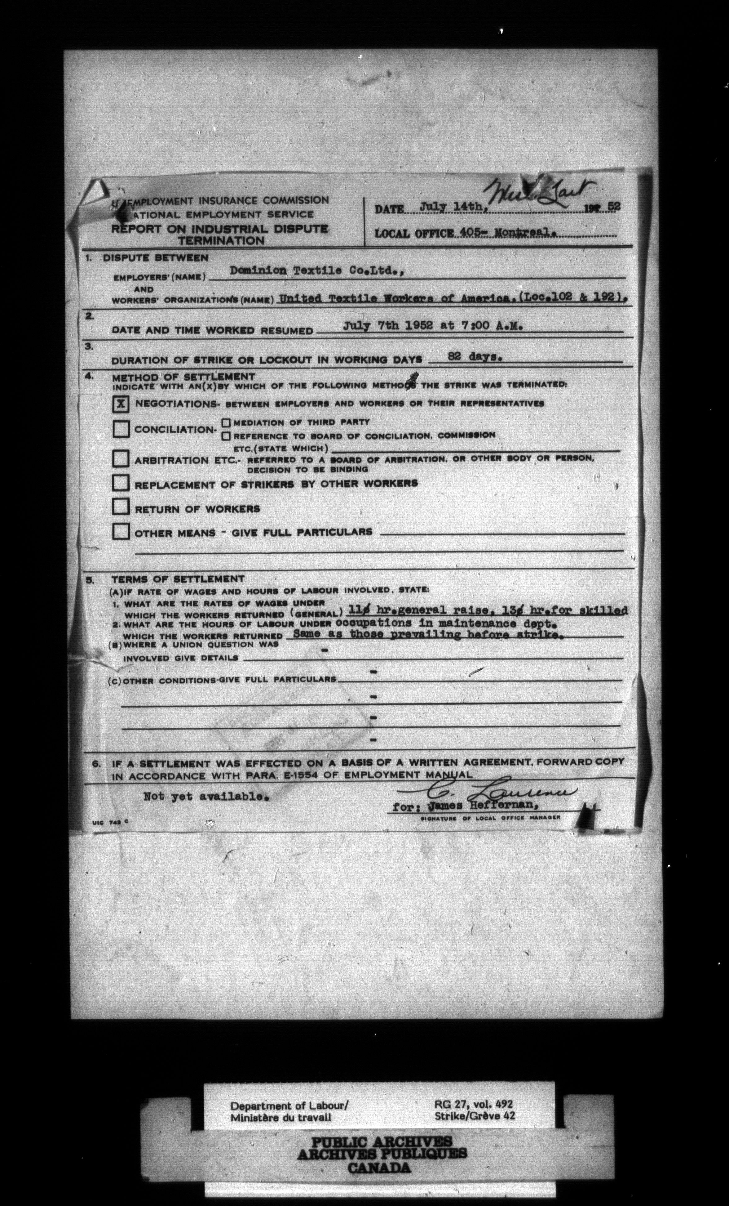 Department of Labour, Economics and Research Branch : Strikes and lockout files : T-4117