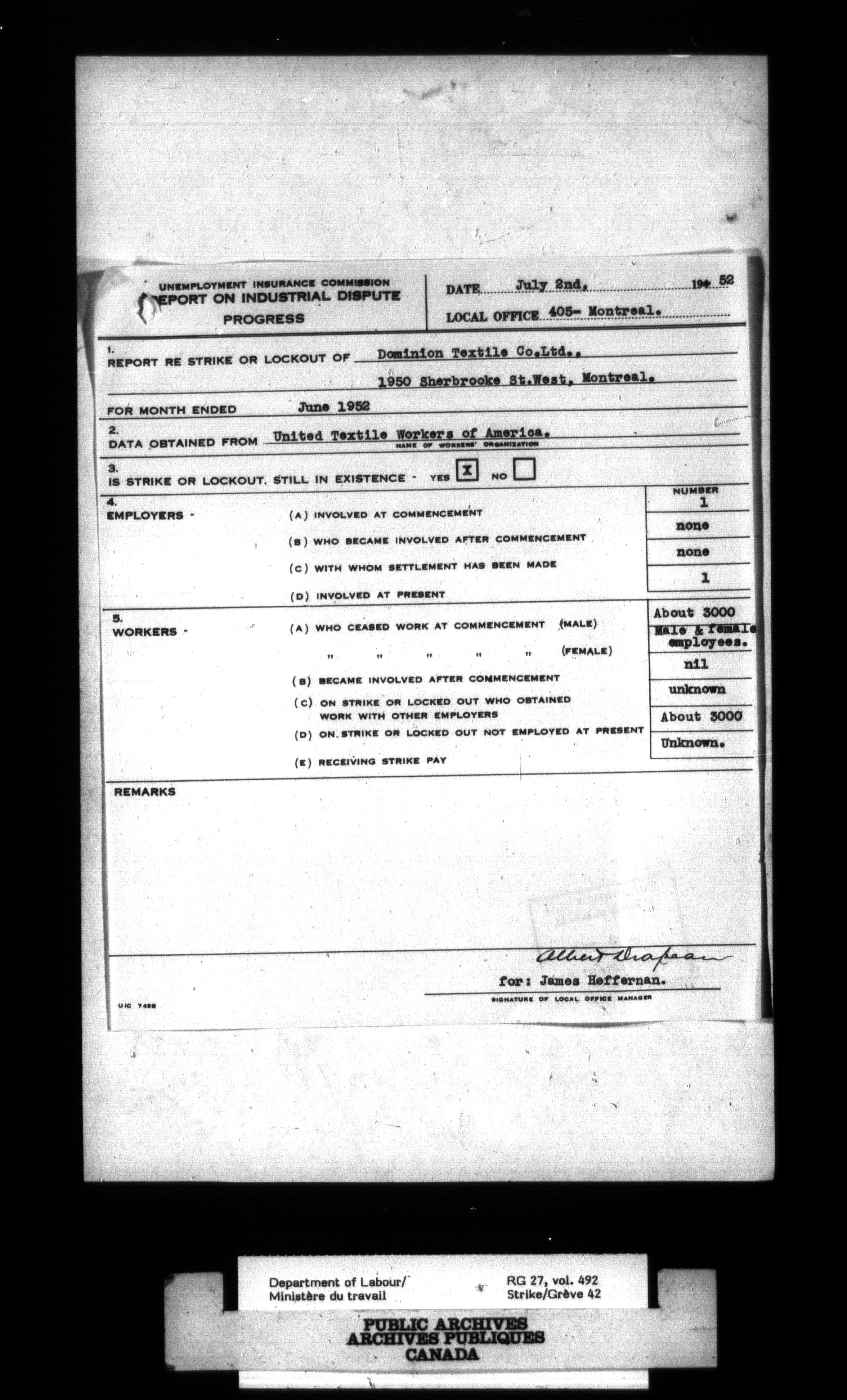 Department of Labour, Economics and Research Branch : Strikes and lockout files - 4117
