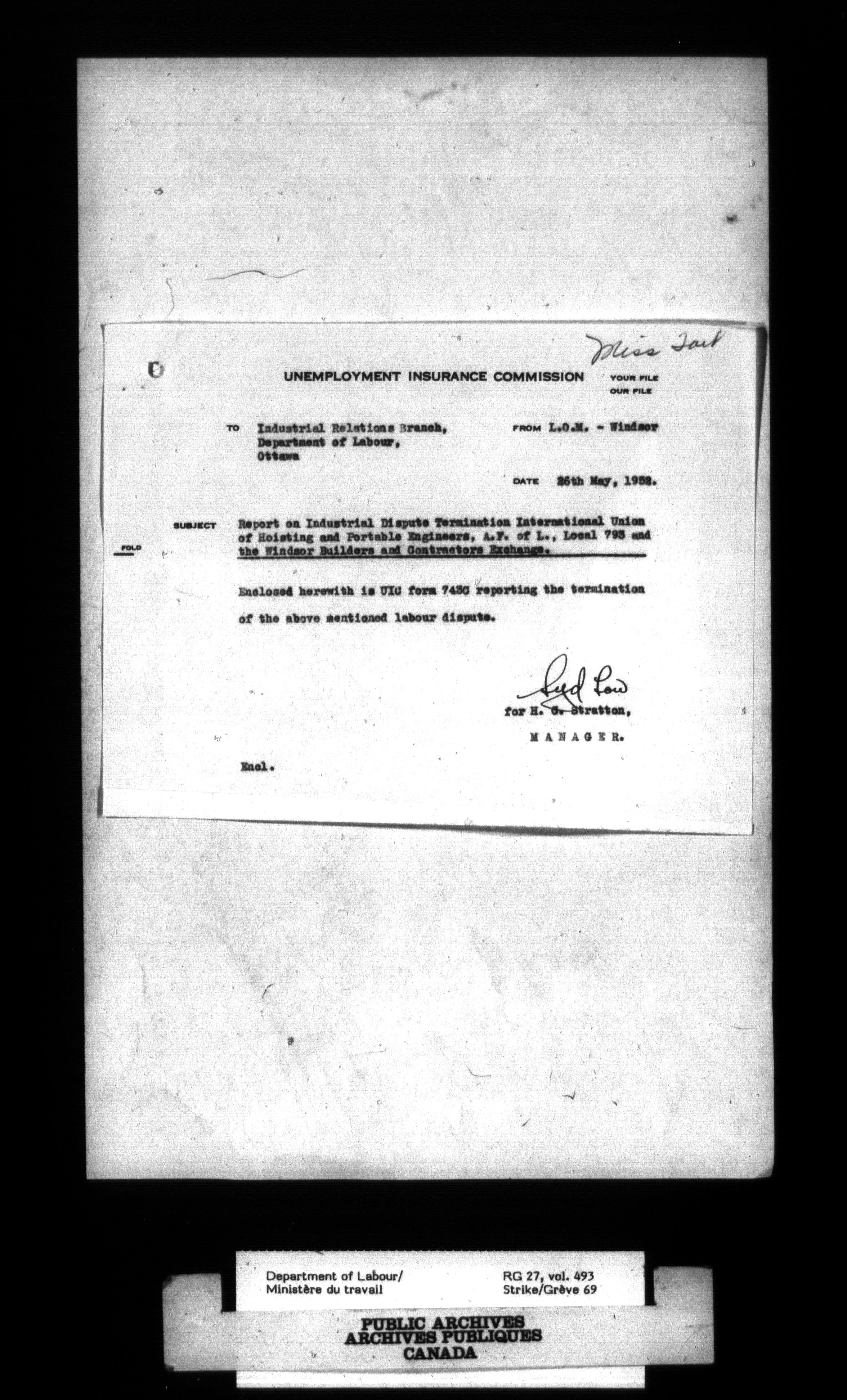 Department of Labour, Economics and Research Branch : Strikes and lockout files - 4117