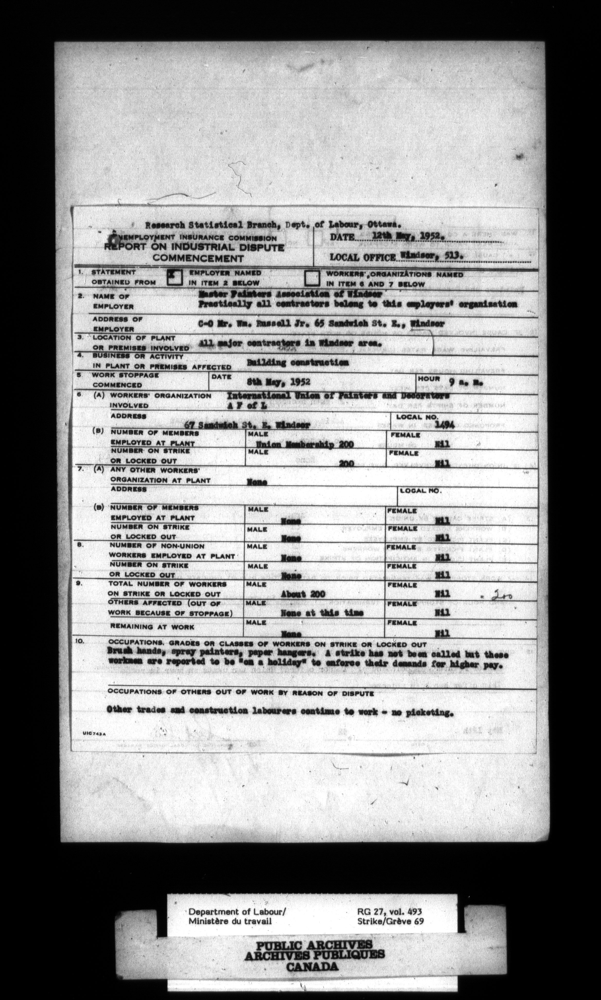 Department of Labour, Economics and Research Branch : Strikes and lockout files - 4117