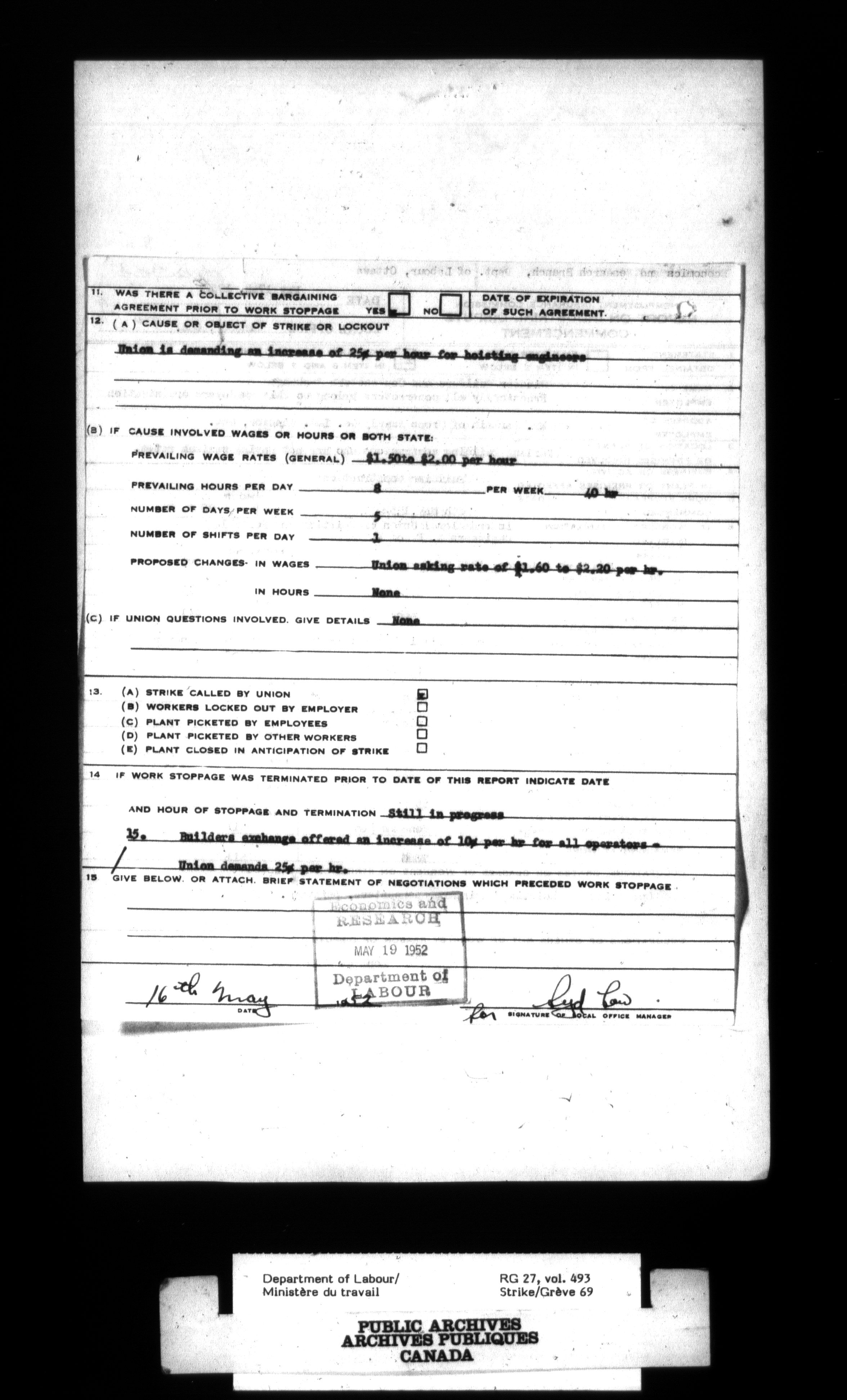 Department of Labour, Economics and Research Branch : Strikes and lockout files - 4117