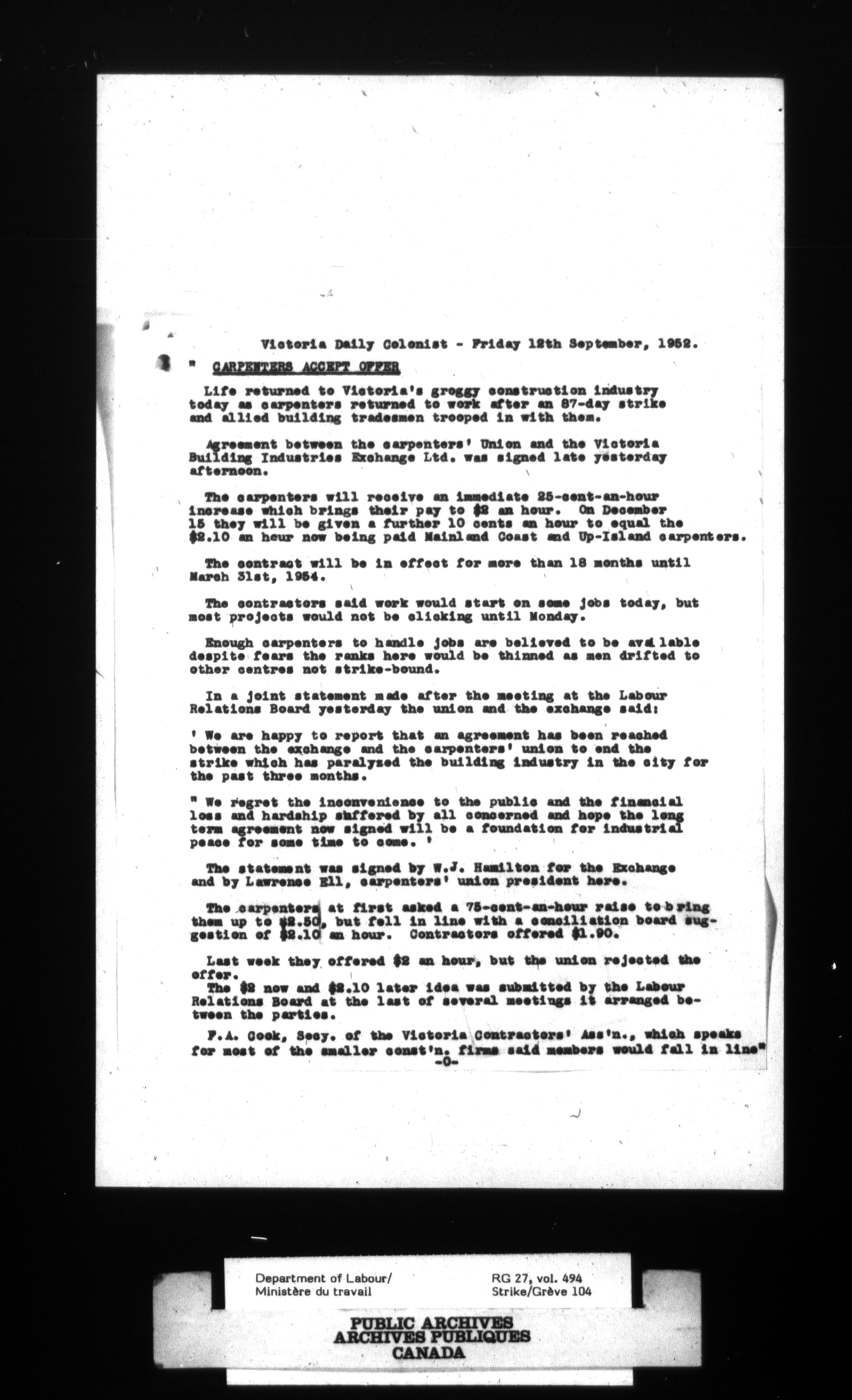Department of Labour, Economics and Research Branch : Strikes and lockout files : T-4118