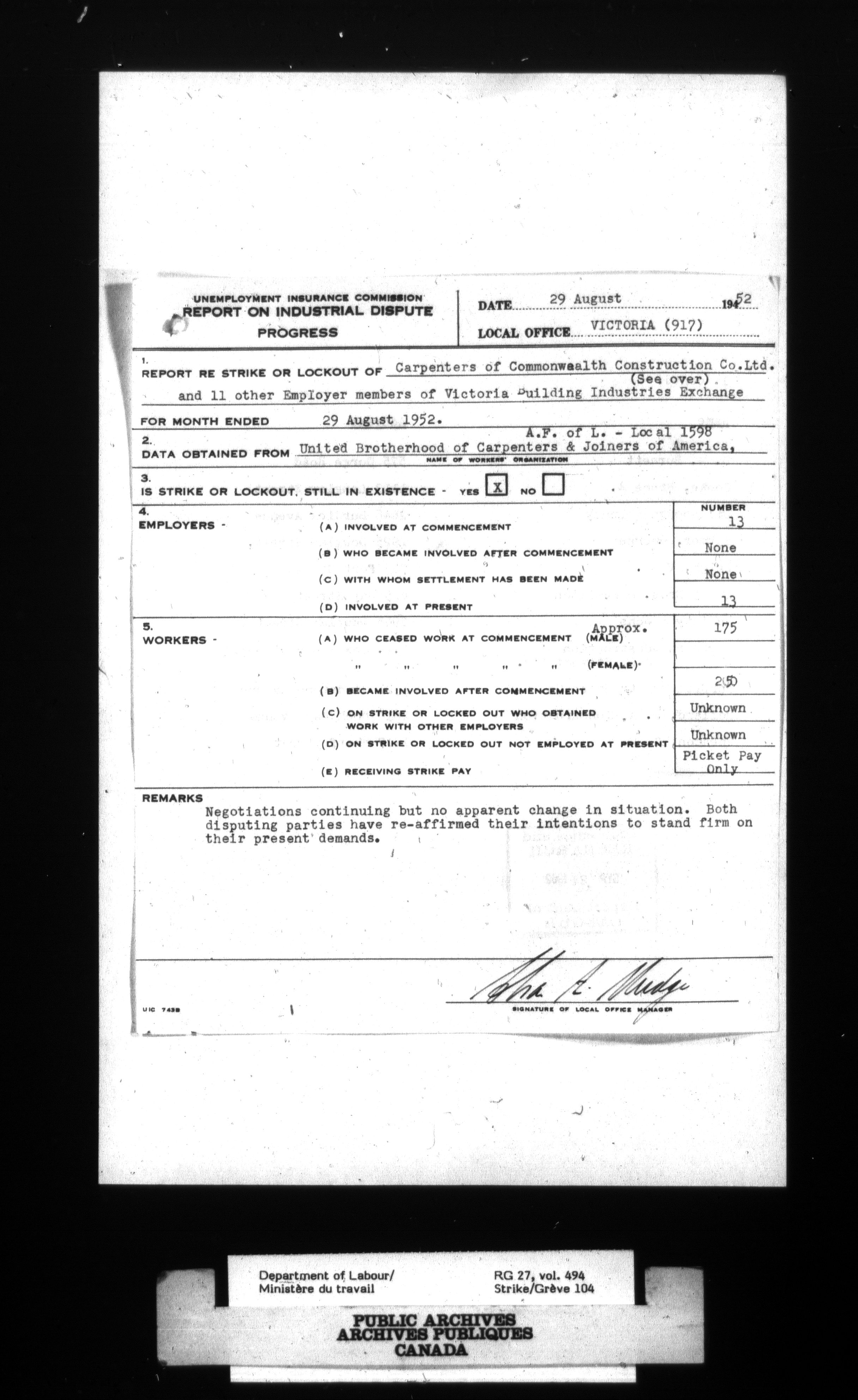 Department of Labour, Economics and Research Branch : Strikes and lockout files - 4118