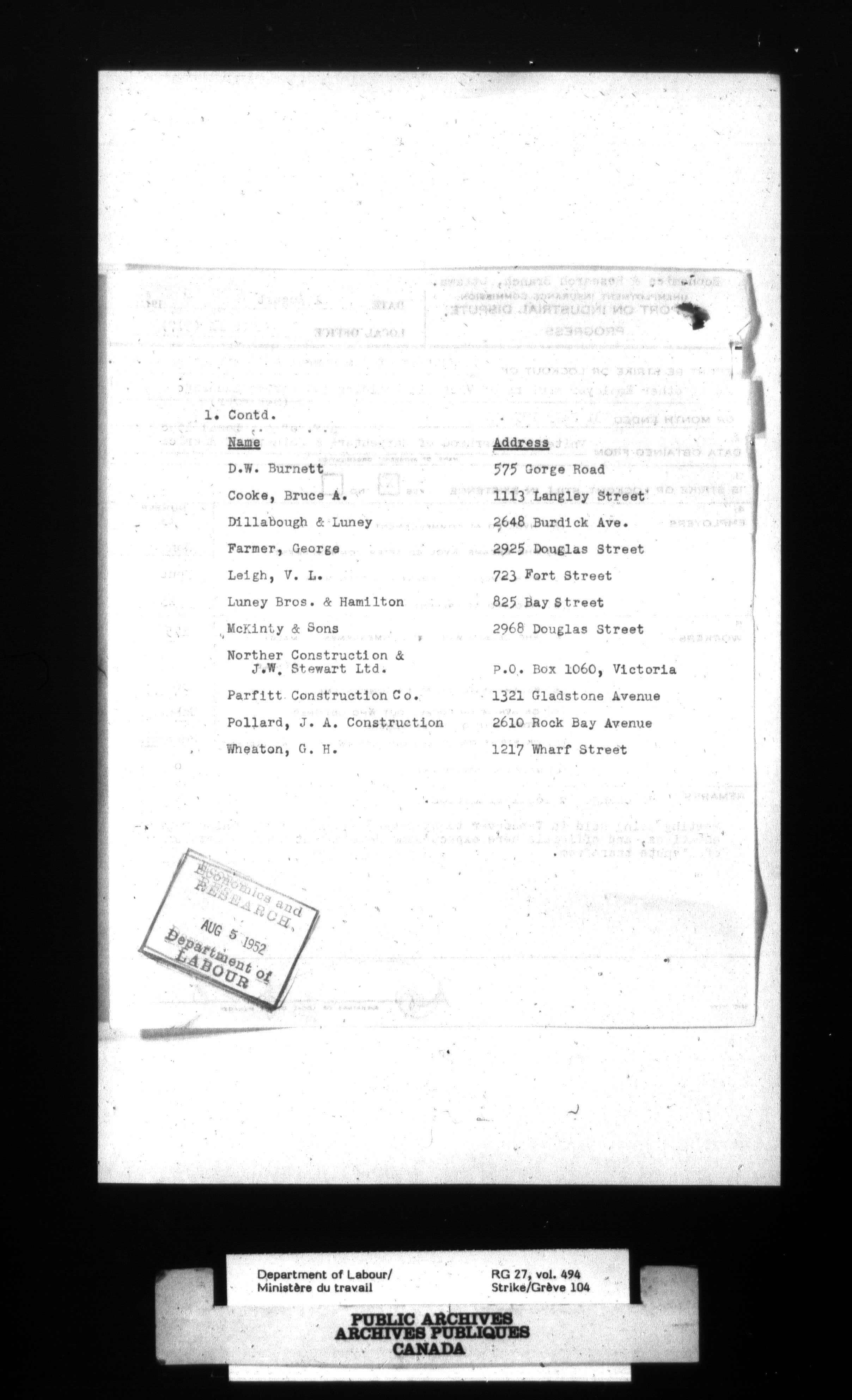 Department of Labour, Economics and Research Branch : Strikes and lockout files - 4118