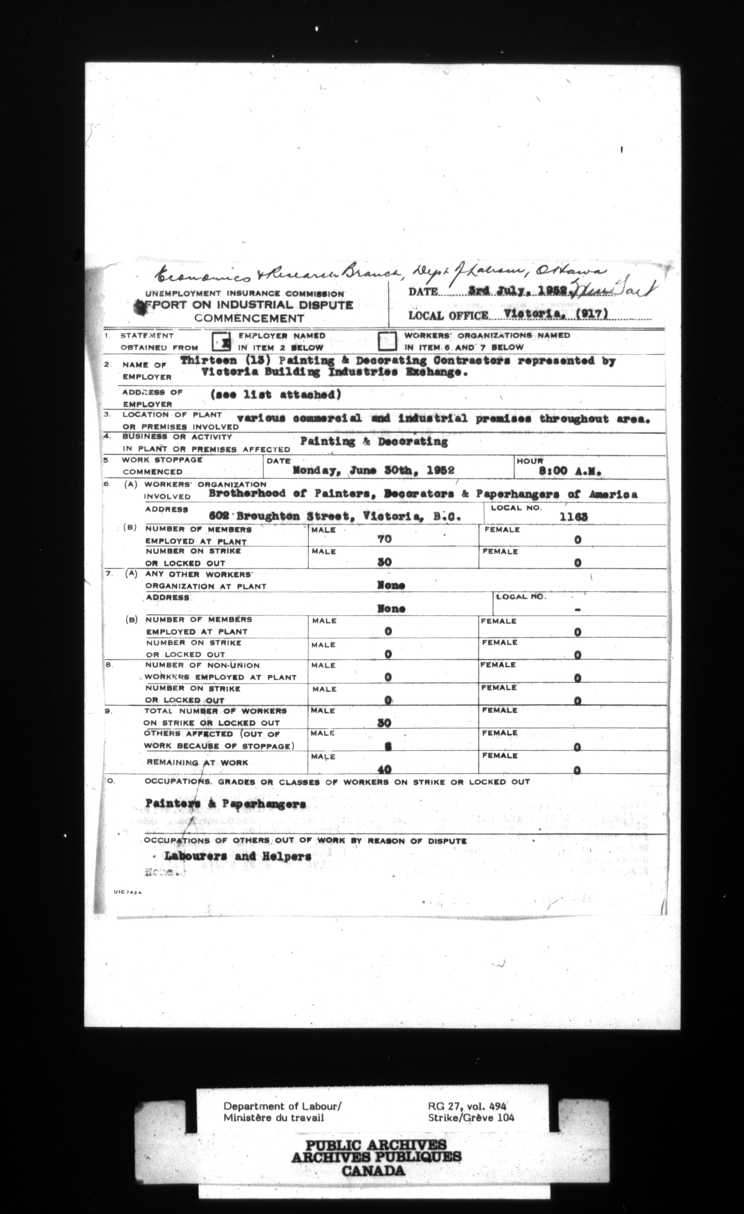Department of Labour, Economics and Research Branch : Strikes and lockout files - 4118