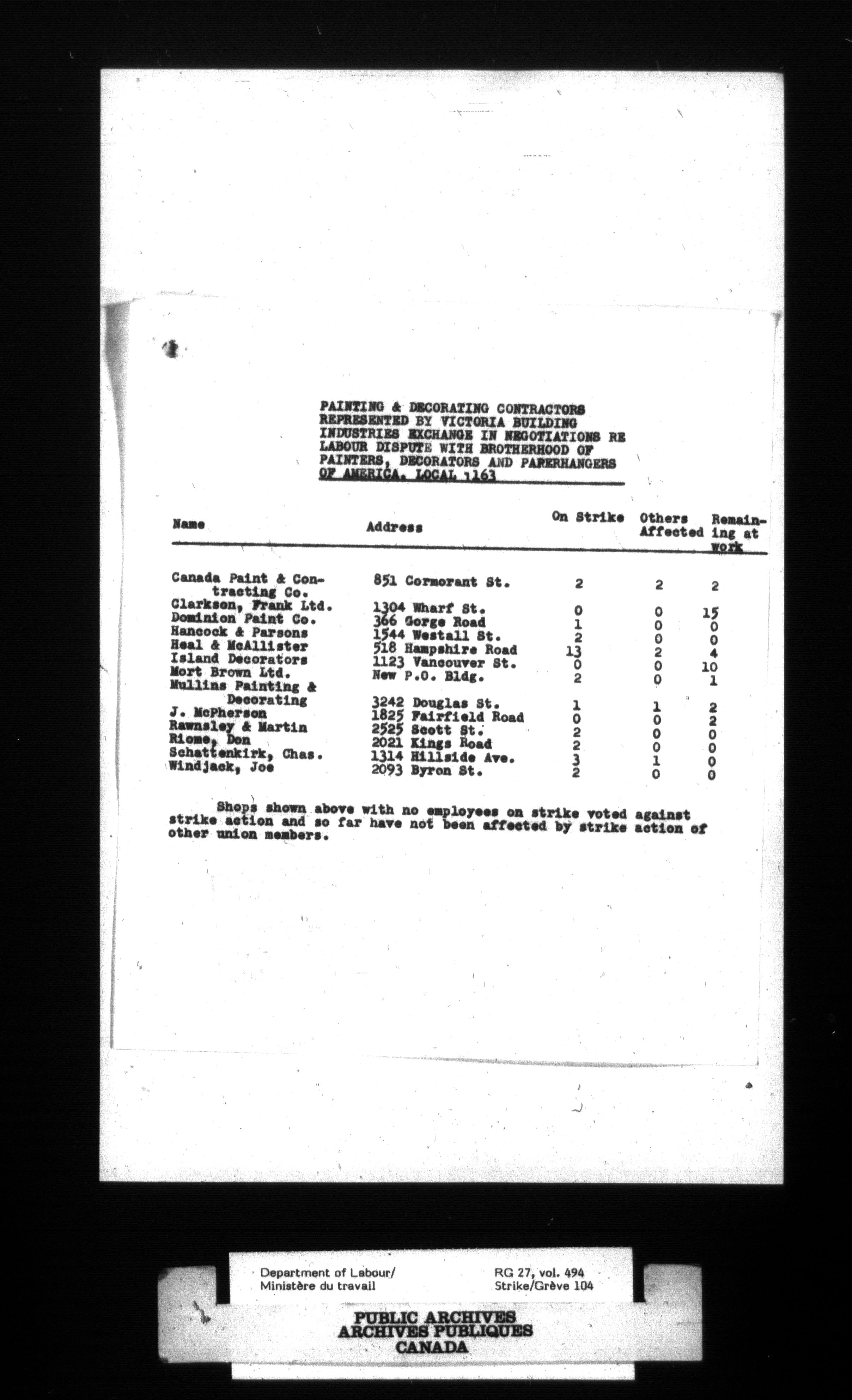 Department of Labour, Economics and Research Branch : Strikes and lockout files - 4118