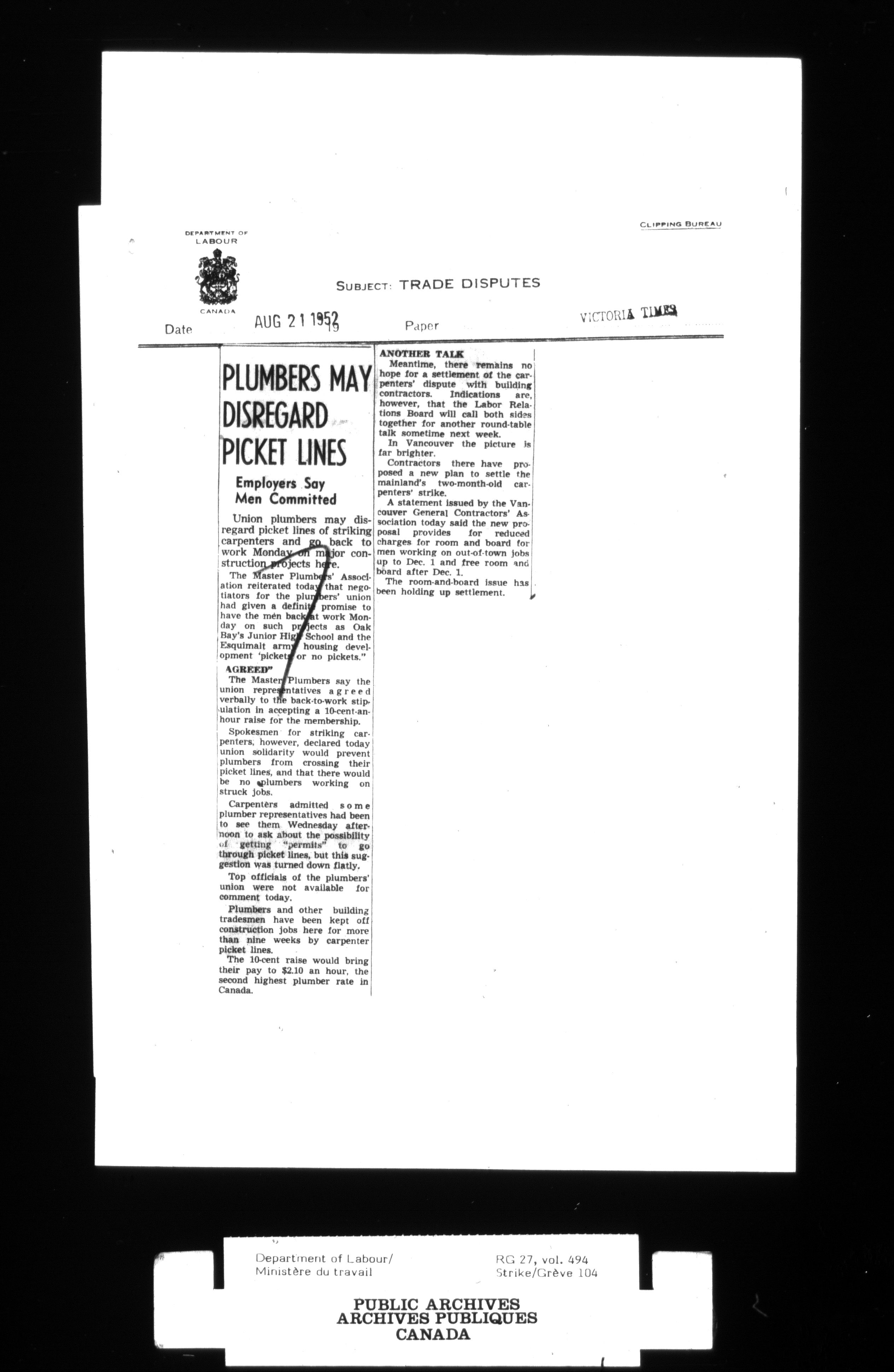 Department of Labour, Economics and Research Branch : Strikes and lockout files - 4119
