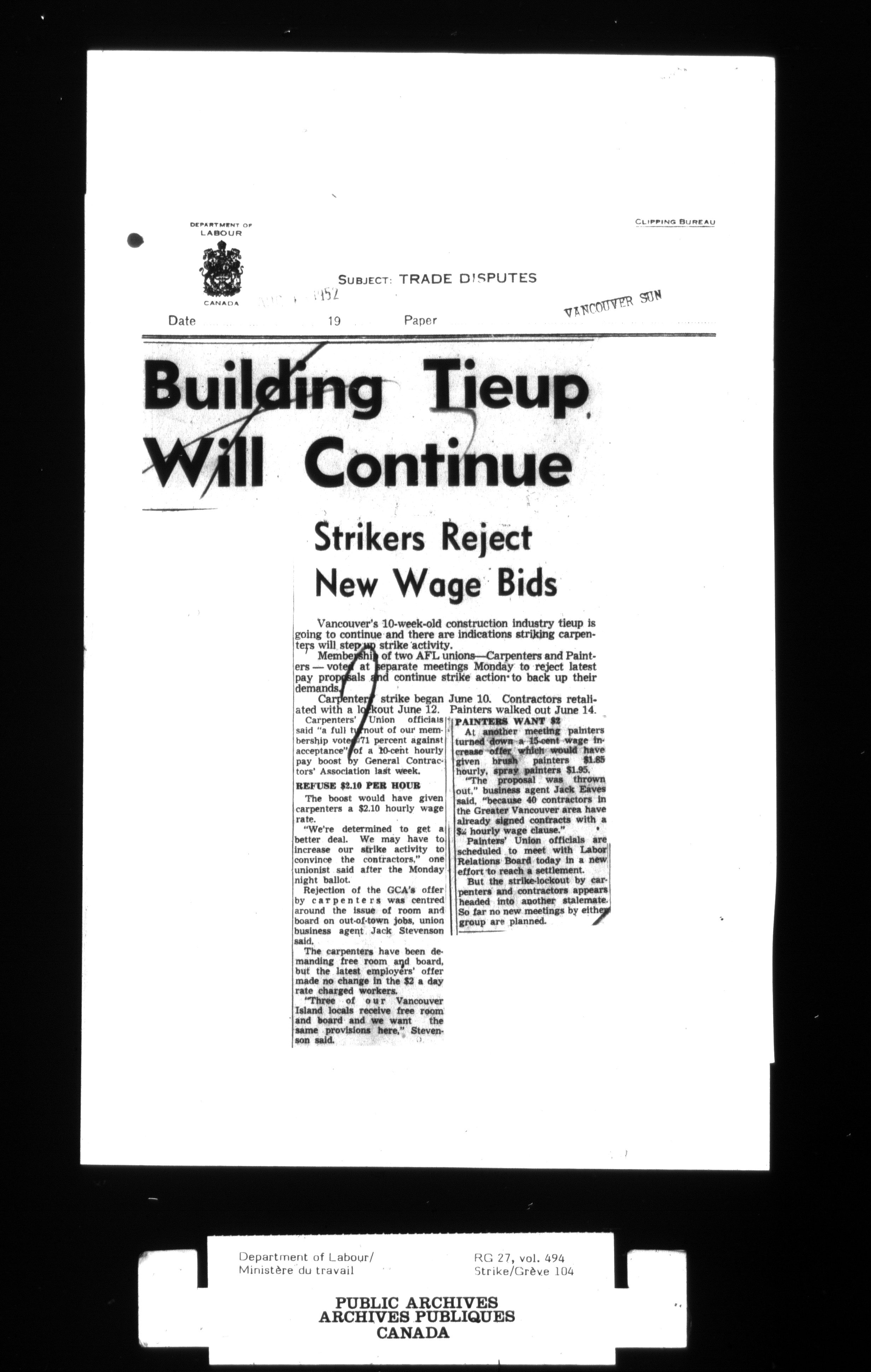 Department of Labour, Economics and Research Branch : Strikes and lockout files - 4119