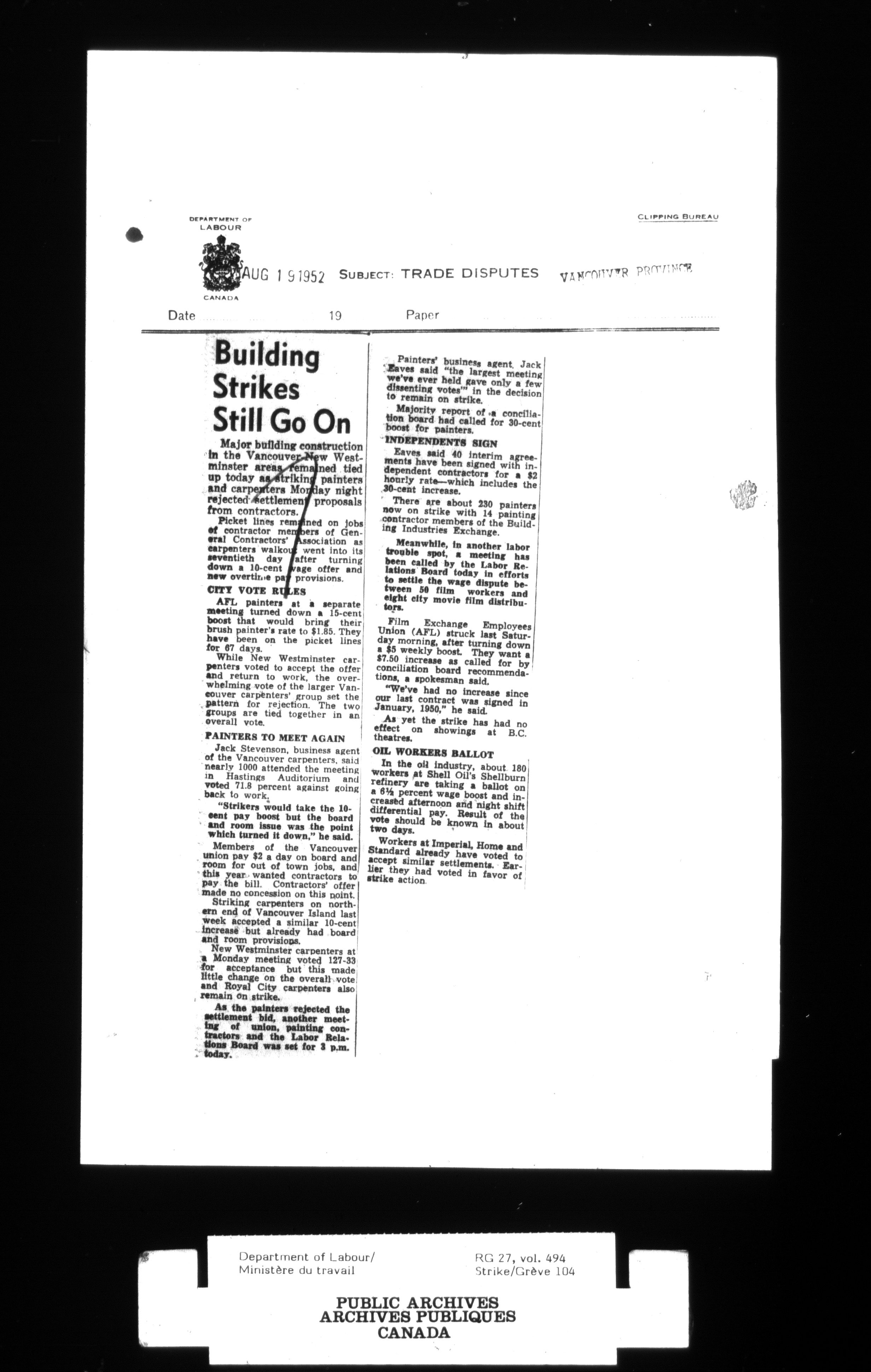 Department of Labour, Economics and Research Branch : Strikes and lockout files - 4119