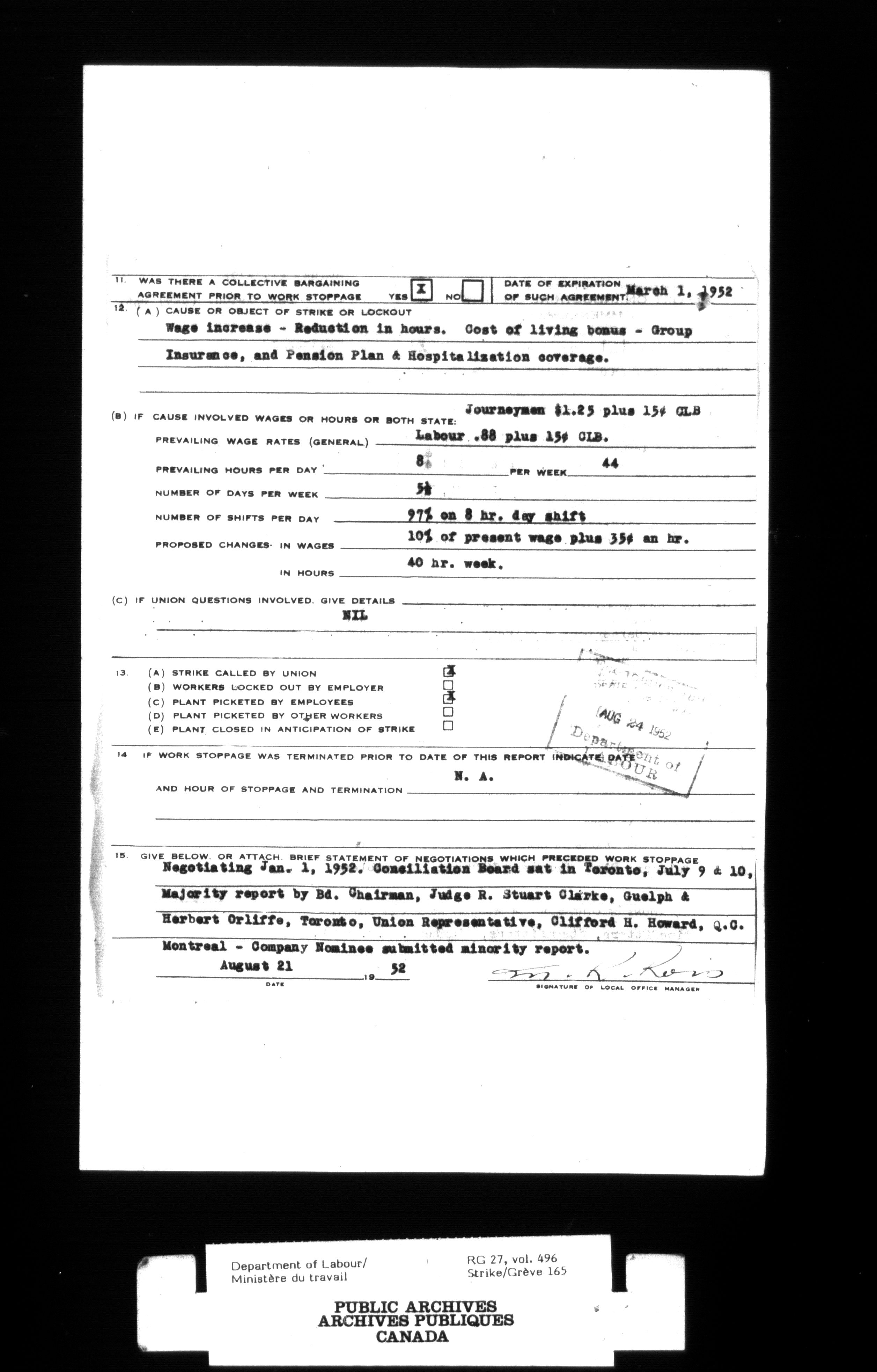 Department of Labour, Economics and Research Branch : Strikes and lockout files - 4121