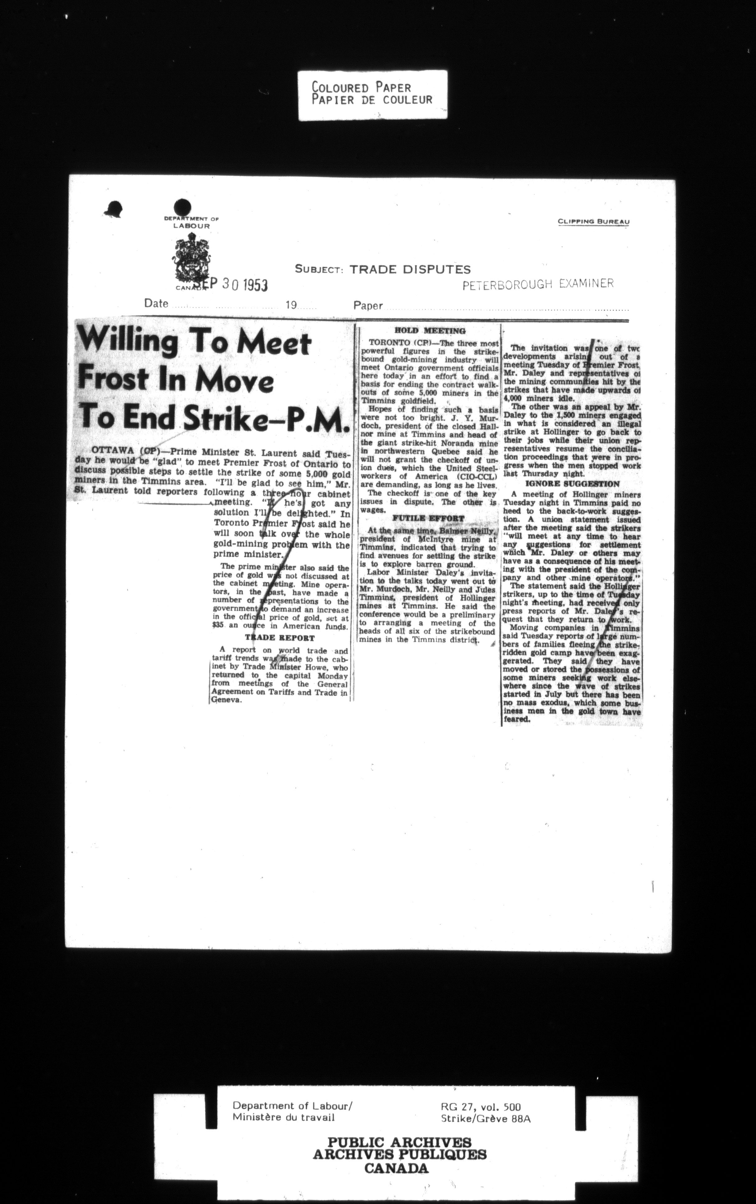 Department of Labour, Economics and Research Branch : Strikes and lockout files - 4124