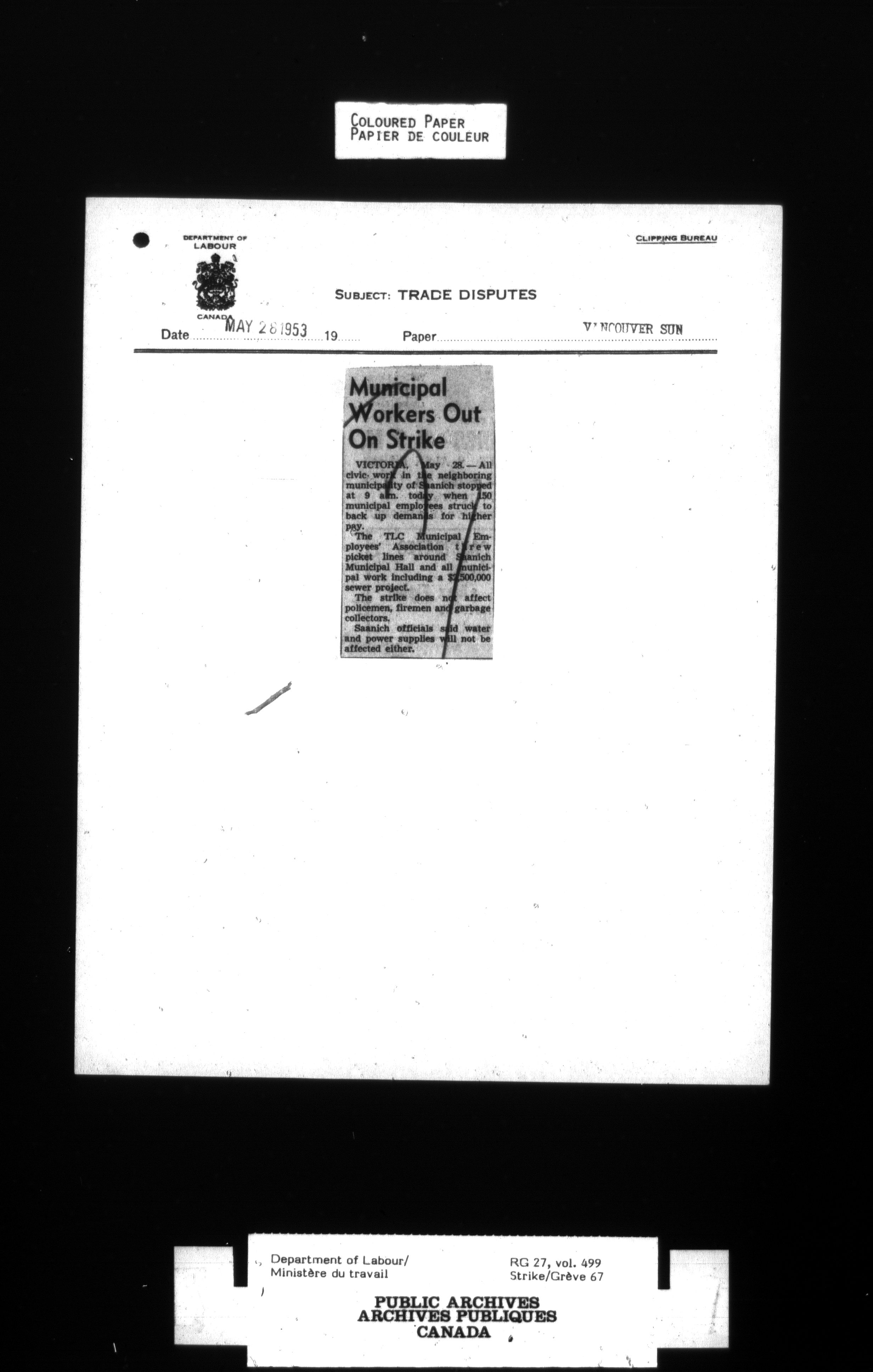 Department of Labour, Economics and Research Branch : Strikes and lockout files - 4124