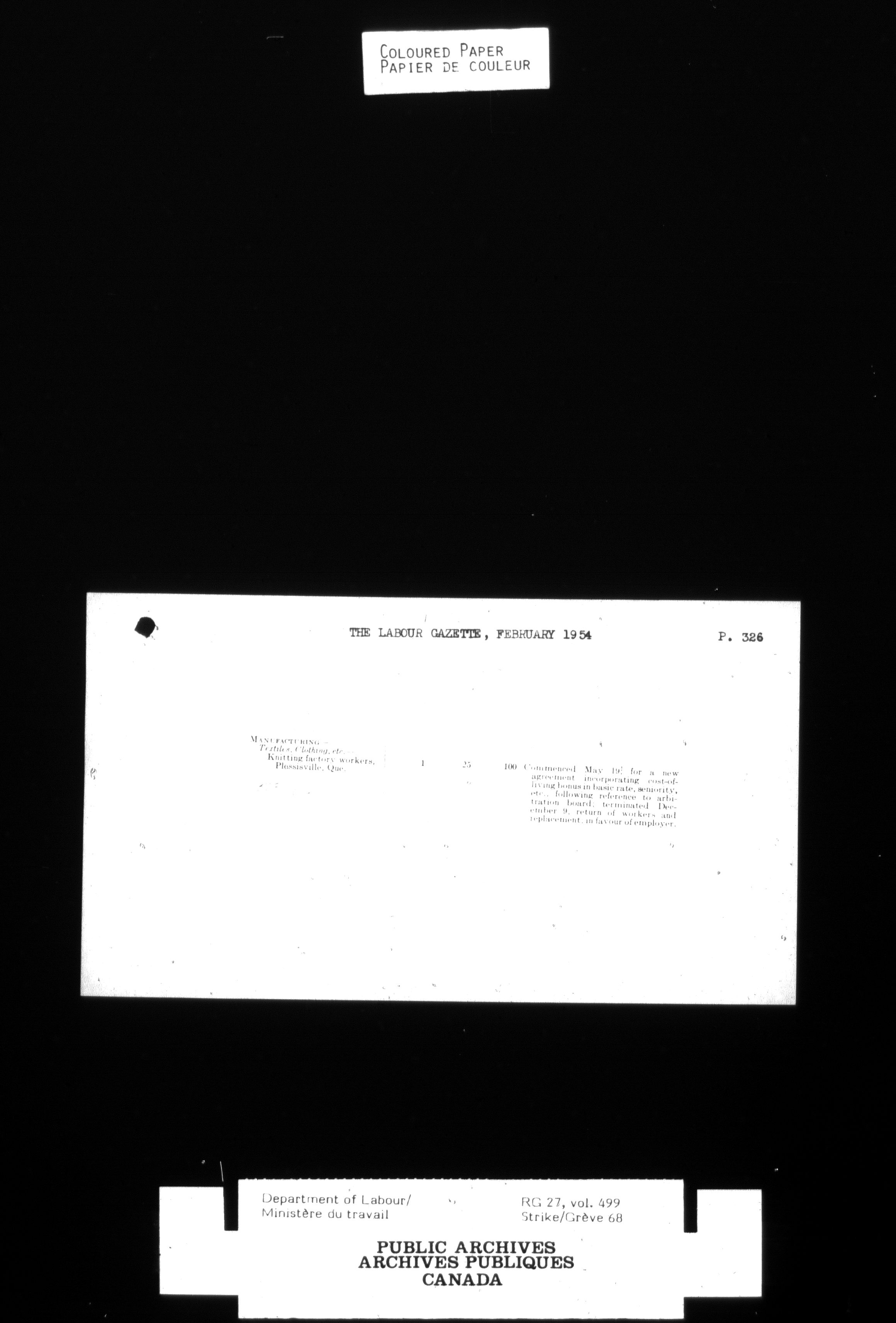 Department of Labour, Economics and Research Branch : Strikes and lockout files - 4124