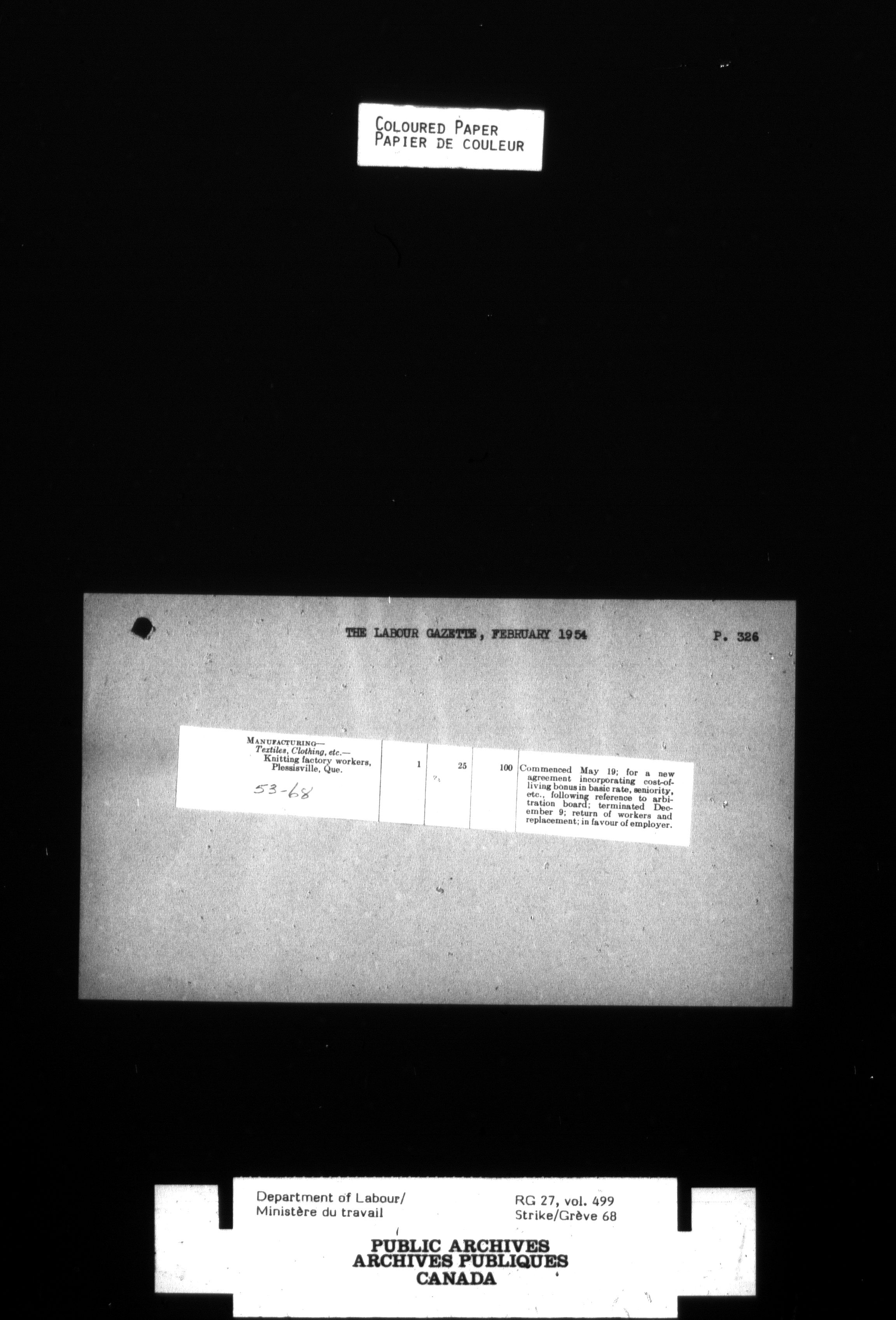 Department of Labour, Economics and Research Branch : Strikes and lockout files - 4124