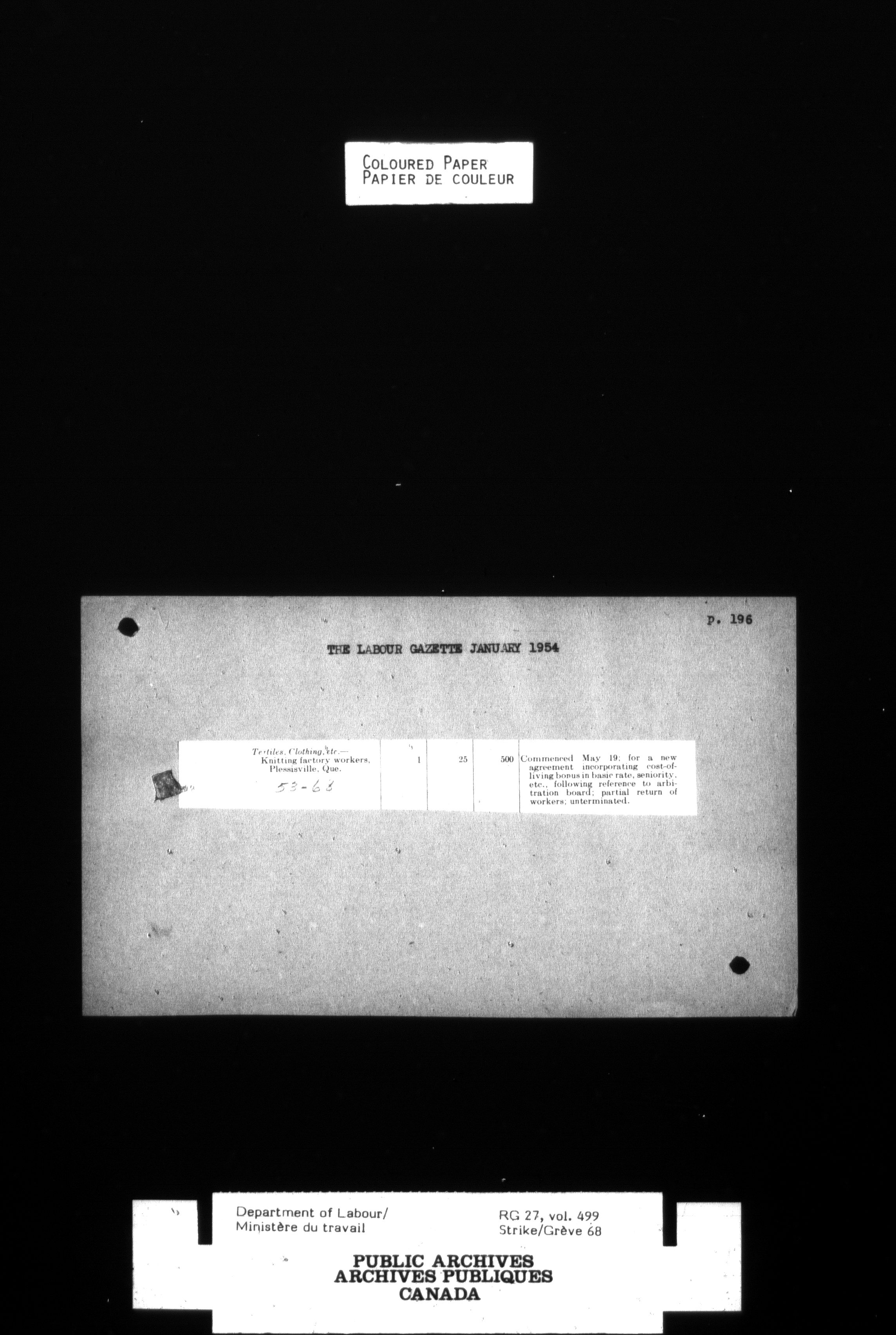 Department of Labour, Economics and Research Branch : Strikes and lockout files - 4124