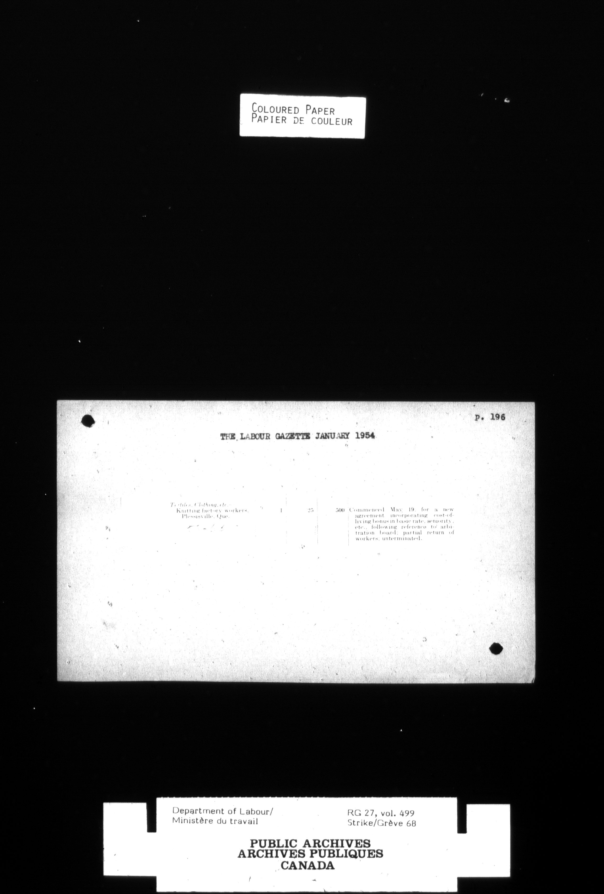 Department of Labour, Economics and Research Branch : Strikes and lockout files - 4124