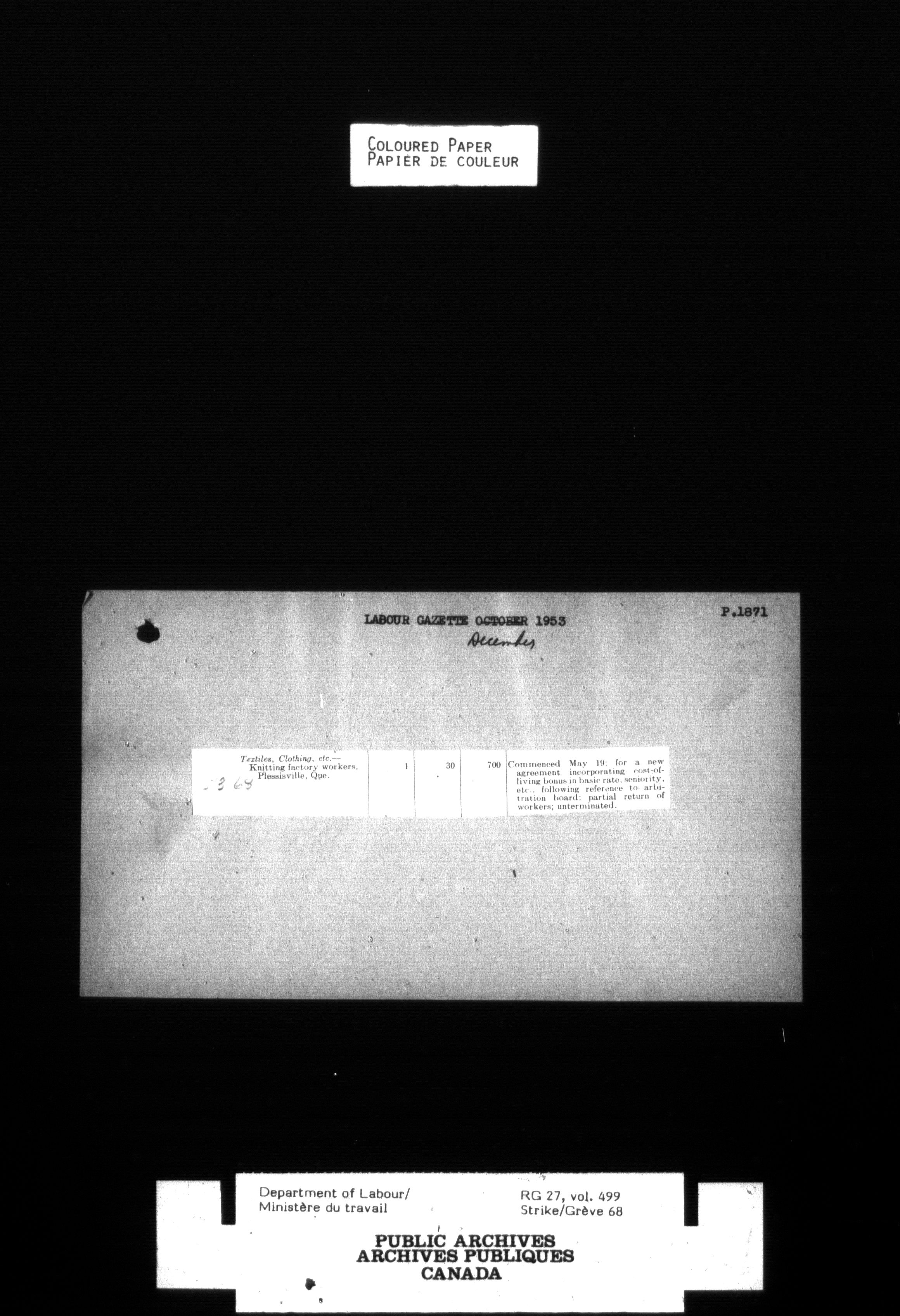 Department of Labour, Economics and Research Branch : Strikes and lockout files - 4124