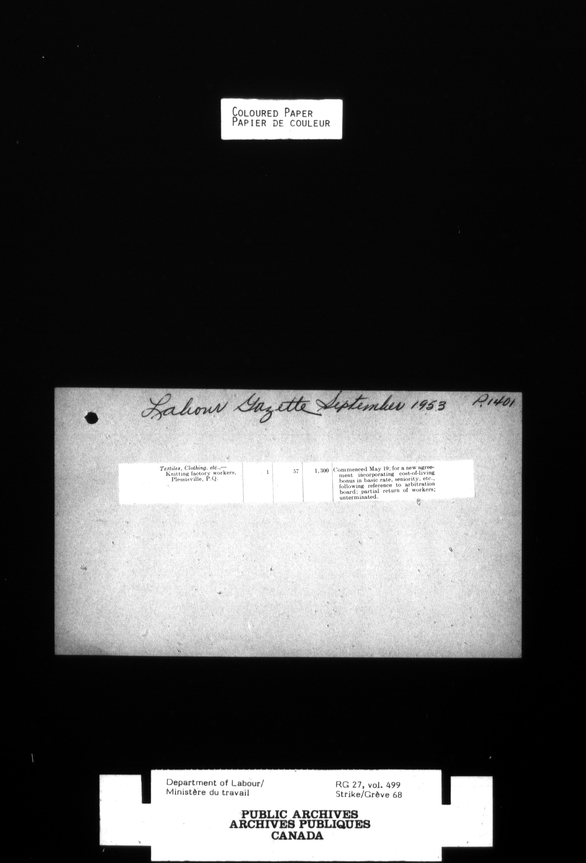 Department of Labour, Economics and Research Branch : Strikes and lockout files - 4124