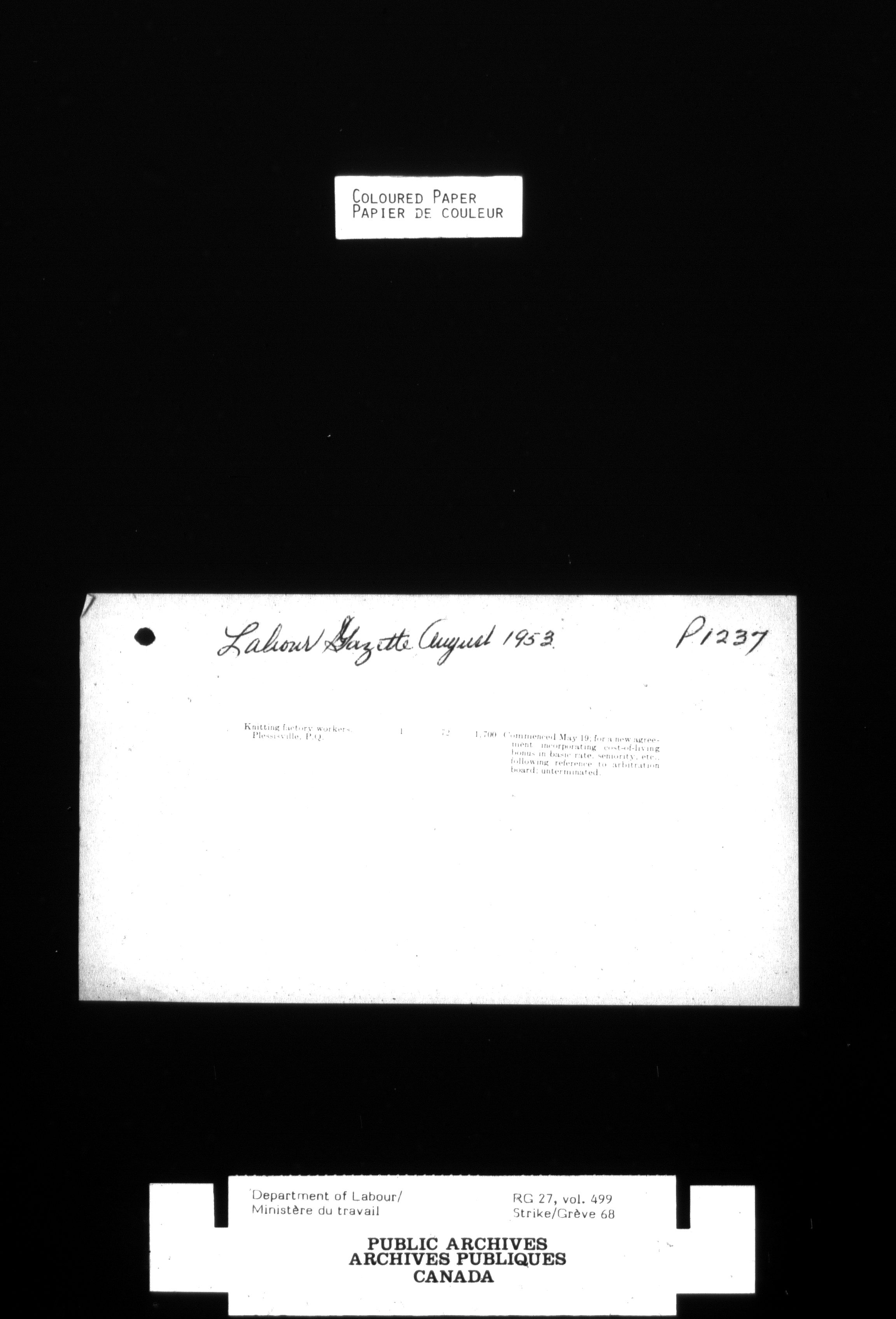 Department of Labour, Economics and Research Branch : Strikes and lockout files - 4124