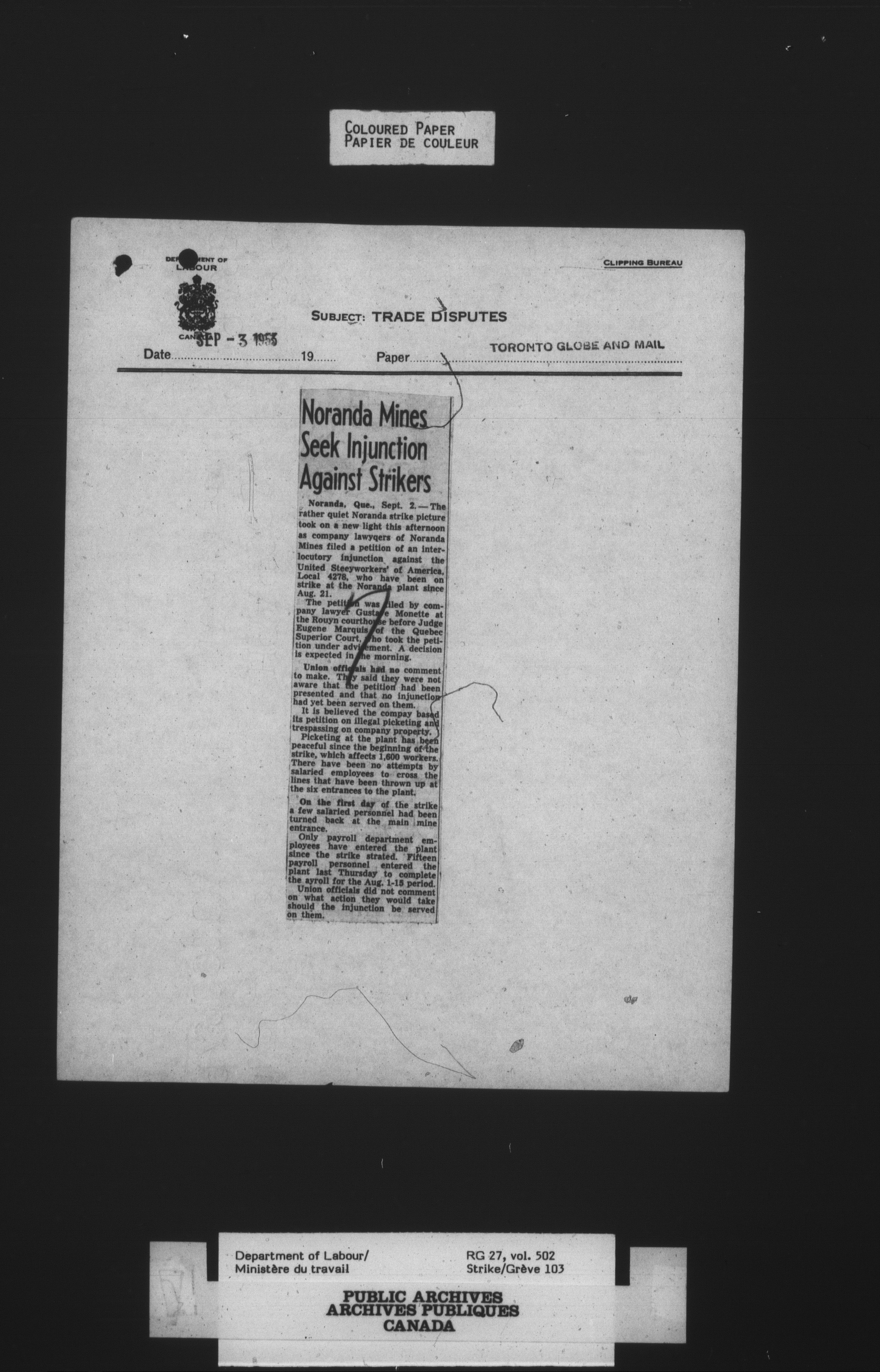 Department of Labour, Economics and Research Branch : Strikes and lockout files - 4125