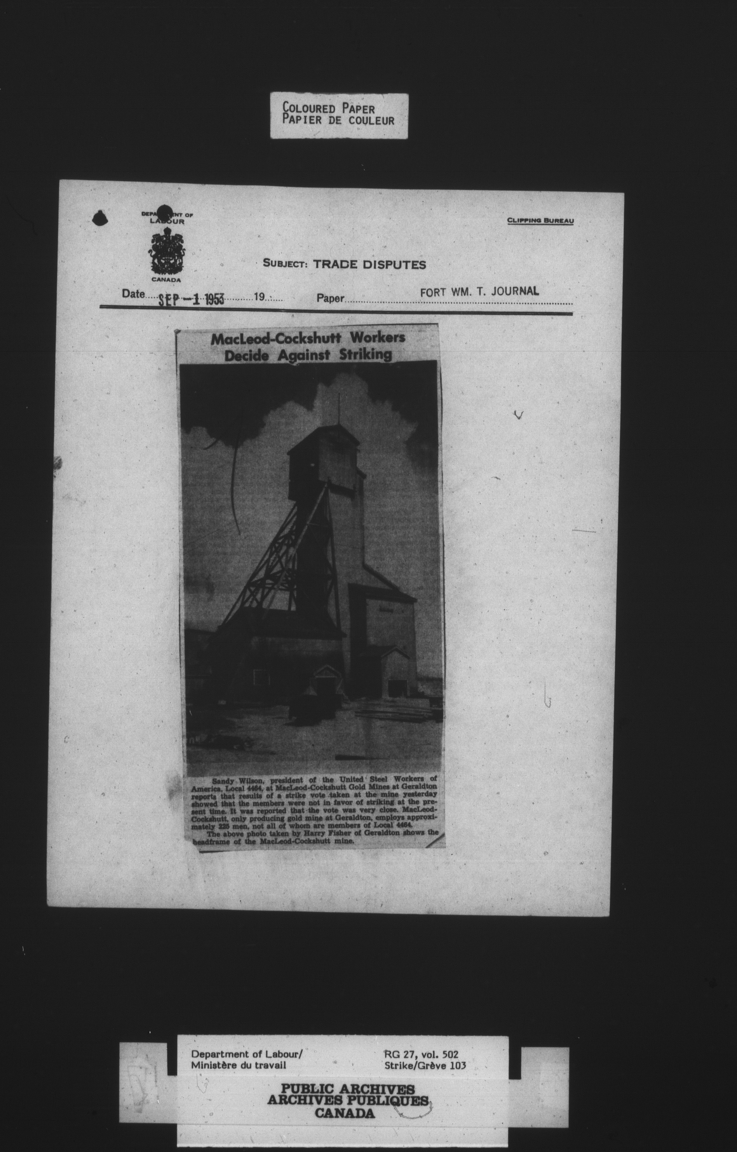 Department of Labour, Economics and Research Branch : Strikes and lockout files - 4125