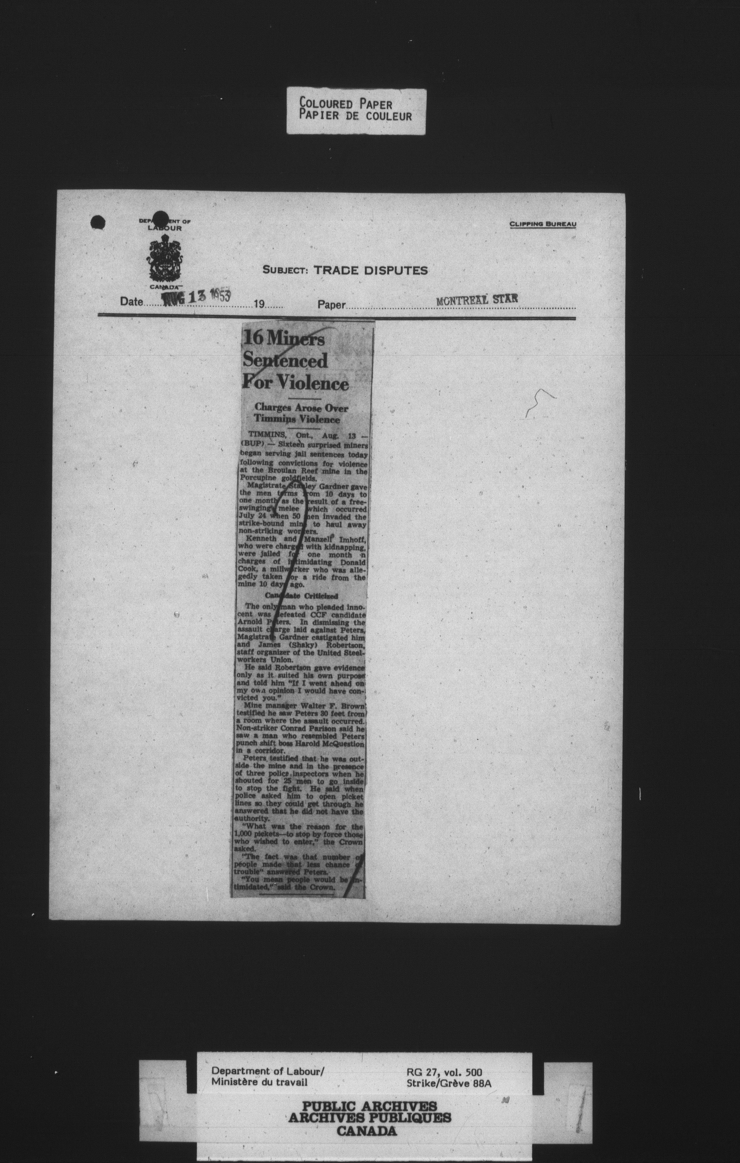 Department of Labour, Economics and Research Branch : Strikes and lockout files - 4125