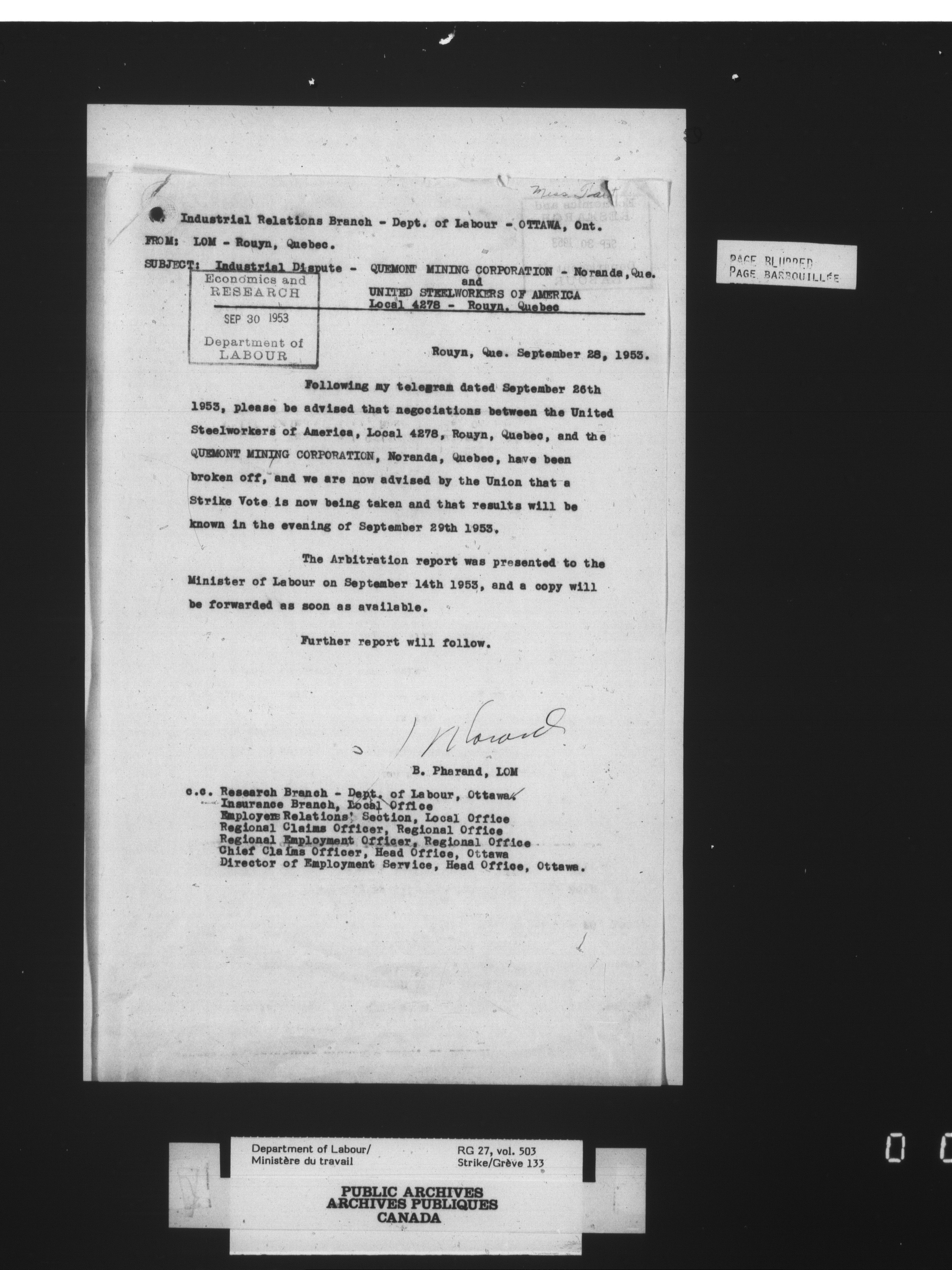 Department of Labour, Economics and Research Branch : Strikes and lockout files - 4126