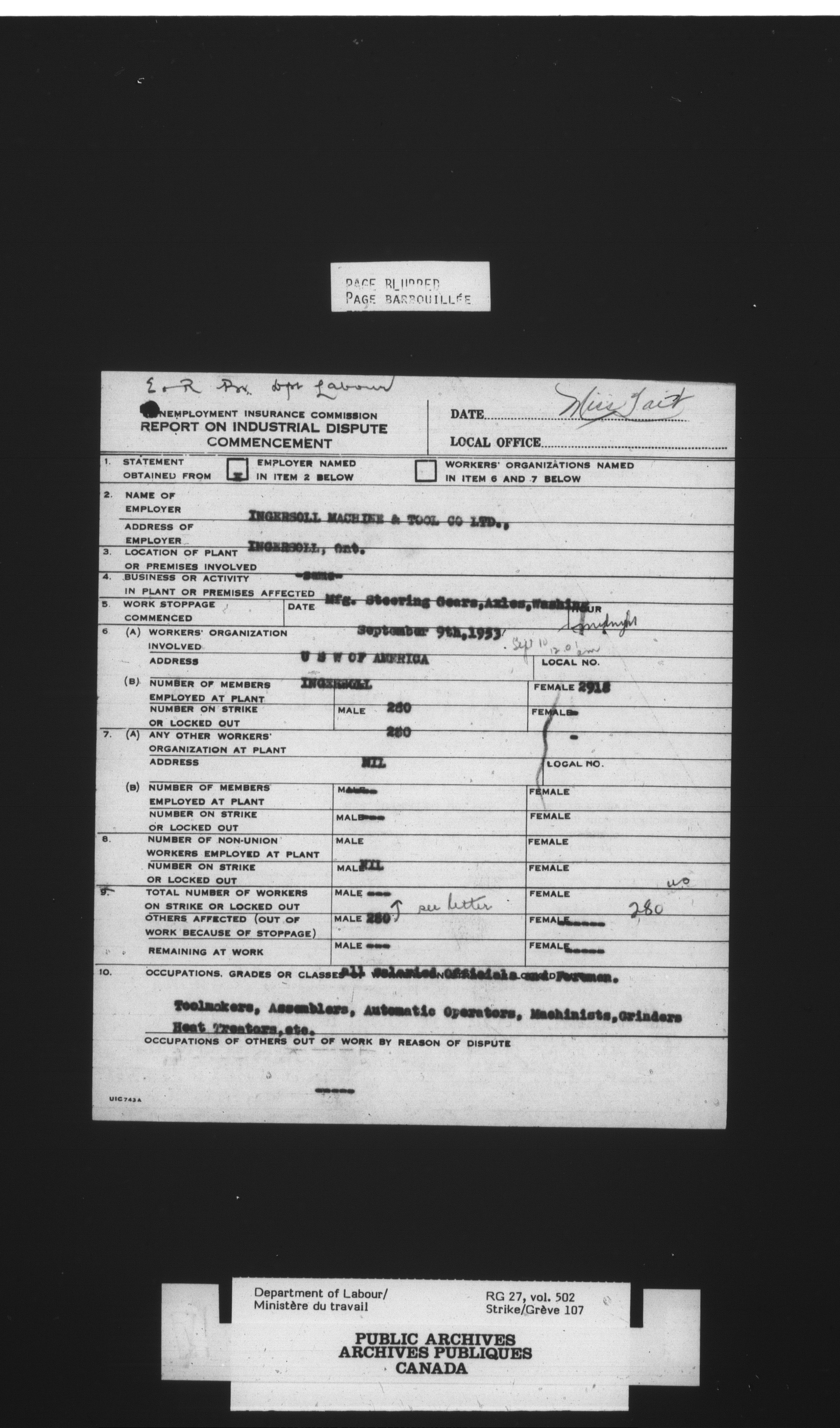Department of Labour, Economics and Research Branch : Strikes and lockout files - 4126