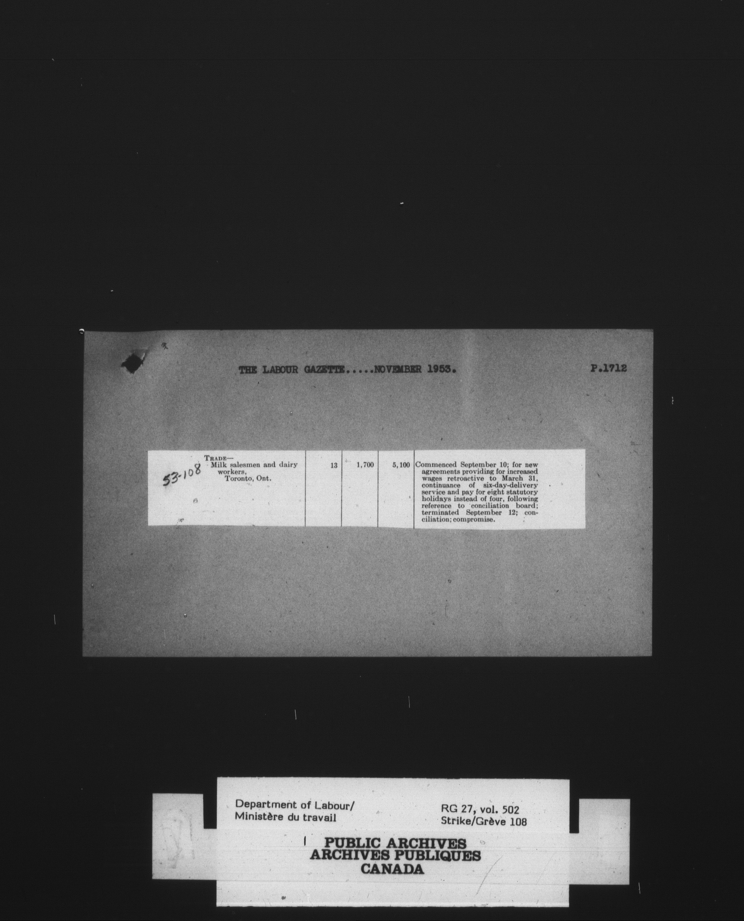 Department of Labour, Economics and Research Branch : Strikes and lockout files - 4126
