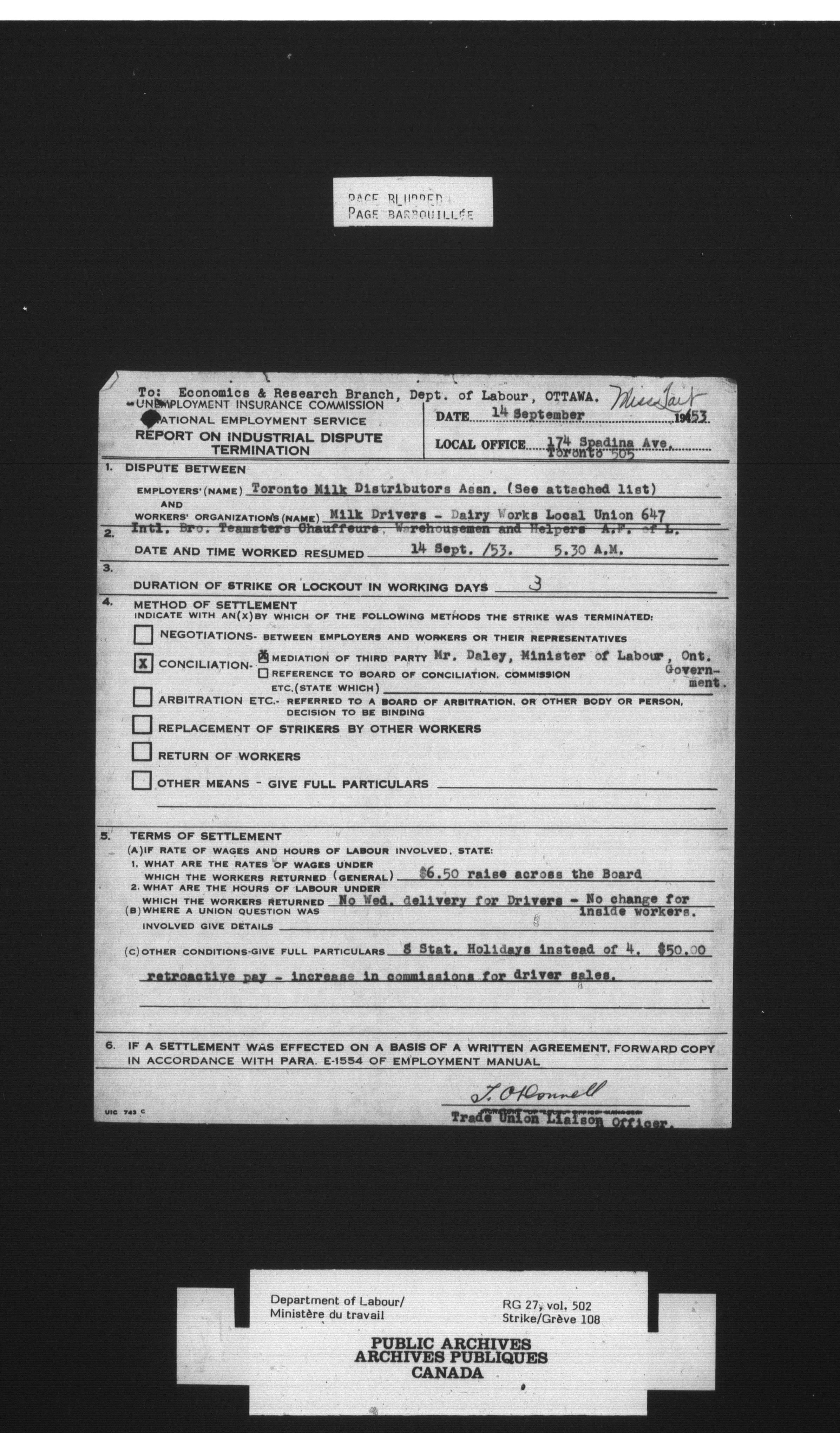 Department of Labour, Economics and Research Branch : Strikes and lockout files - 4126