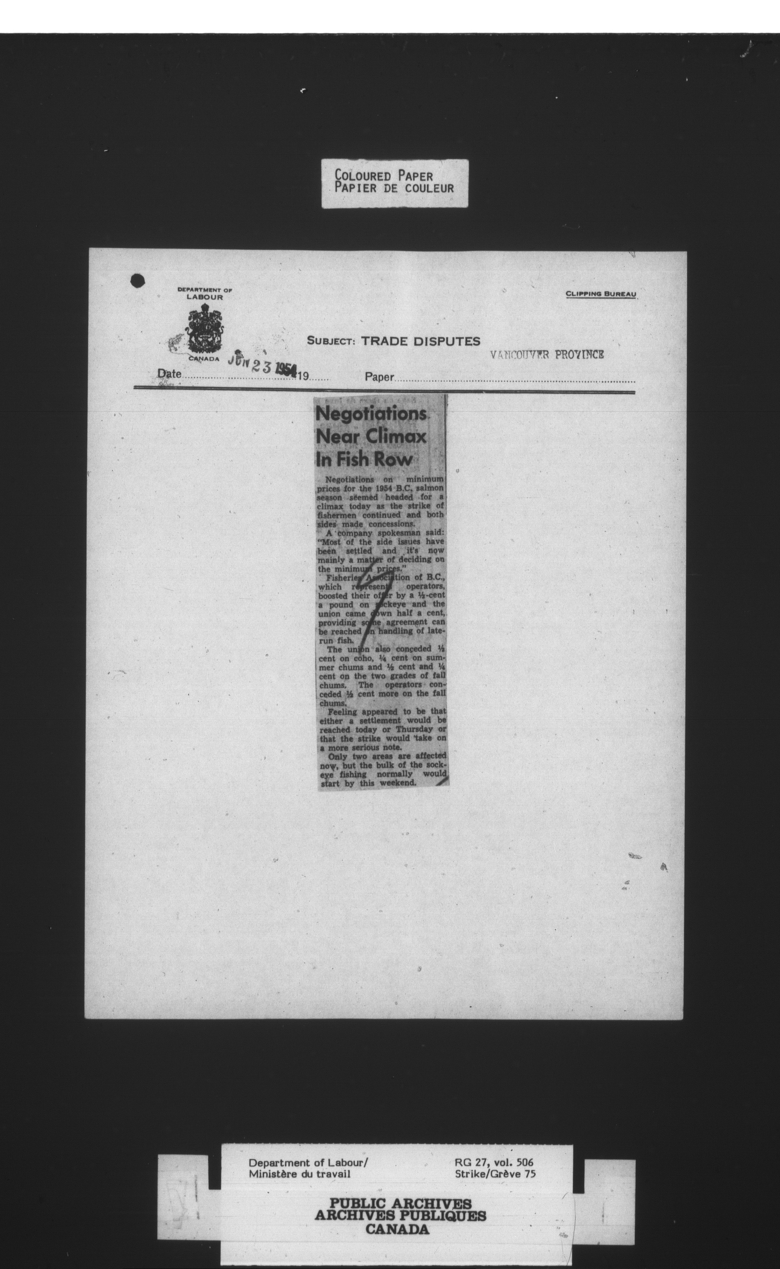 Department of Labour, Economics and Research Branch : Strikes and lockout files - 4128