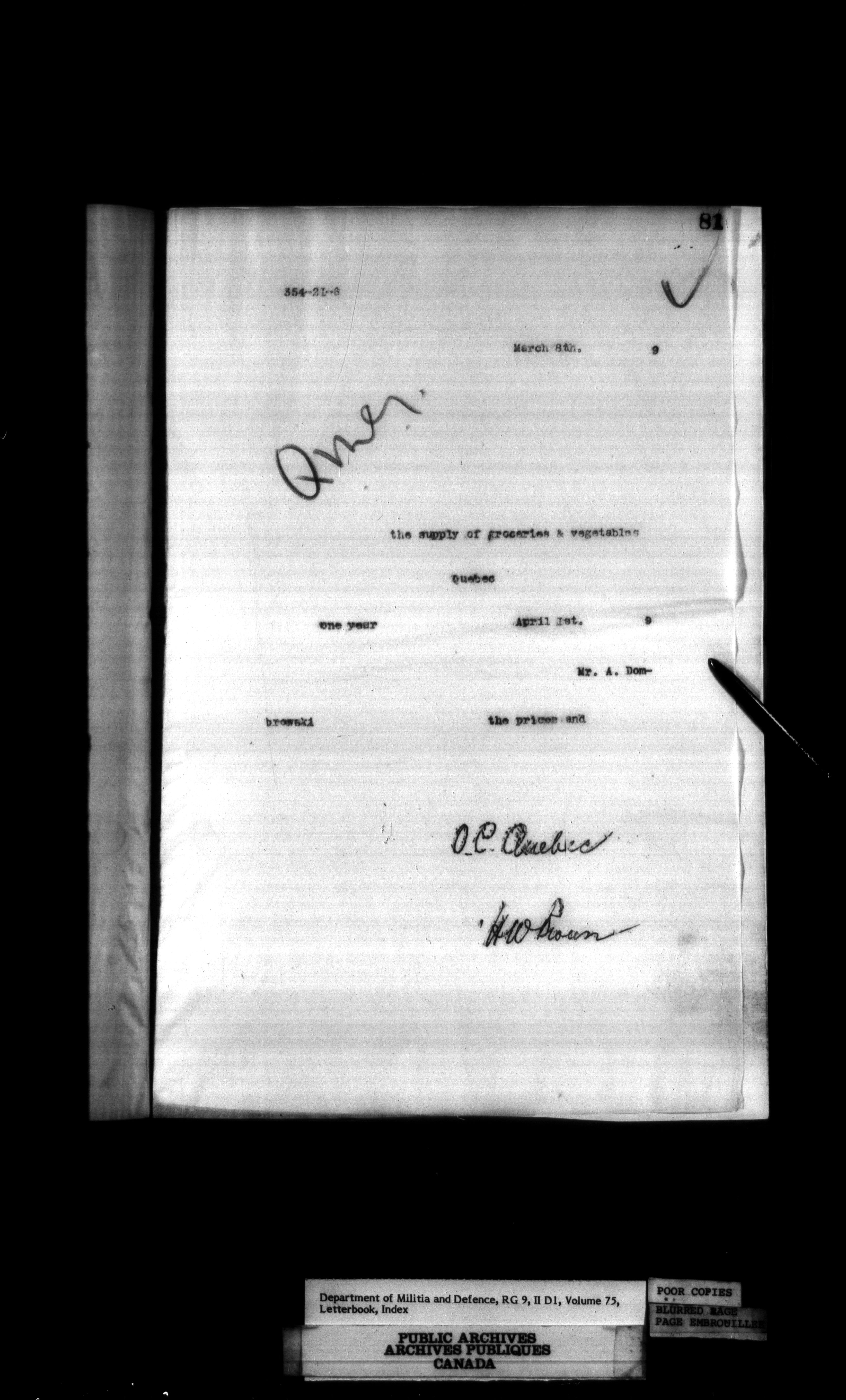 Department of Militia and Defence : Contracts Branch letterbooks, 1895-1912 - 413