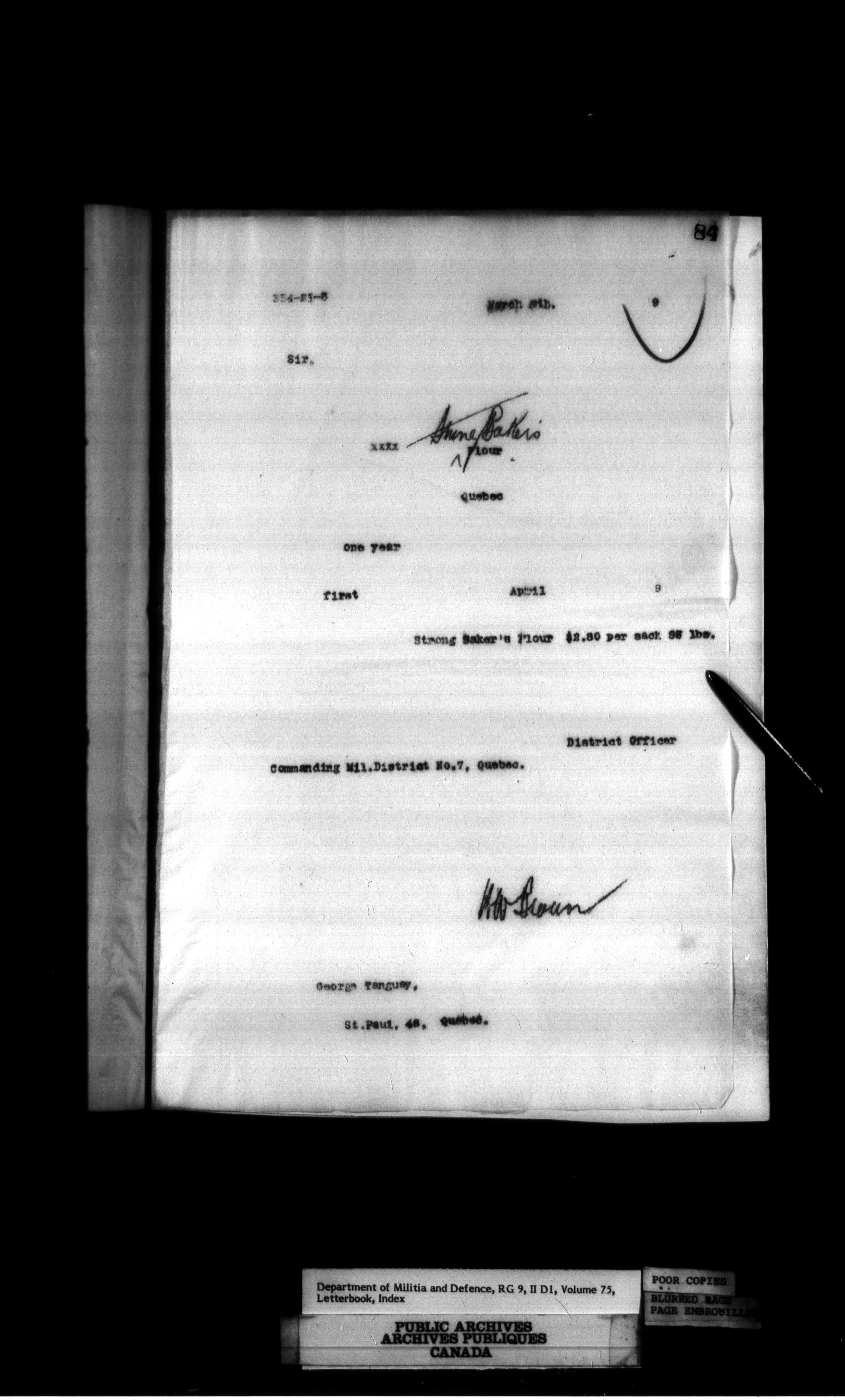 Department of Militia and Defence. Contracts Branch : Letterbooks, 1895-1912 : T-413
