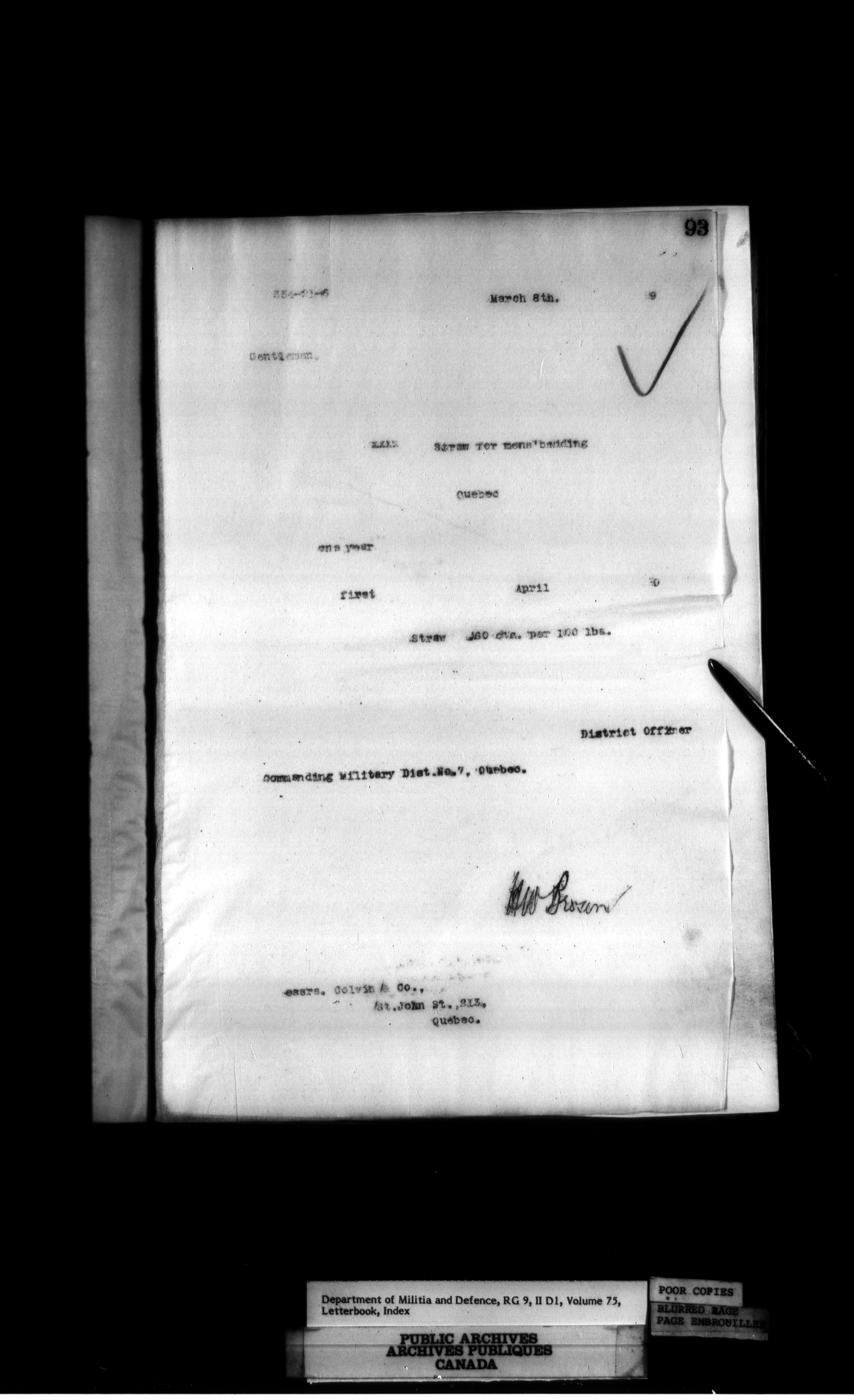 Department of Militia and Defence : Contracts Branch letterbooks, 1895-1912 - 413