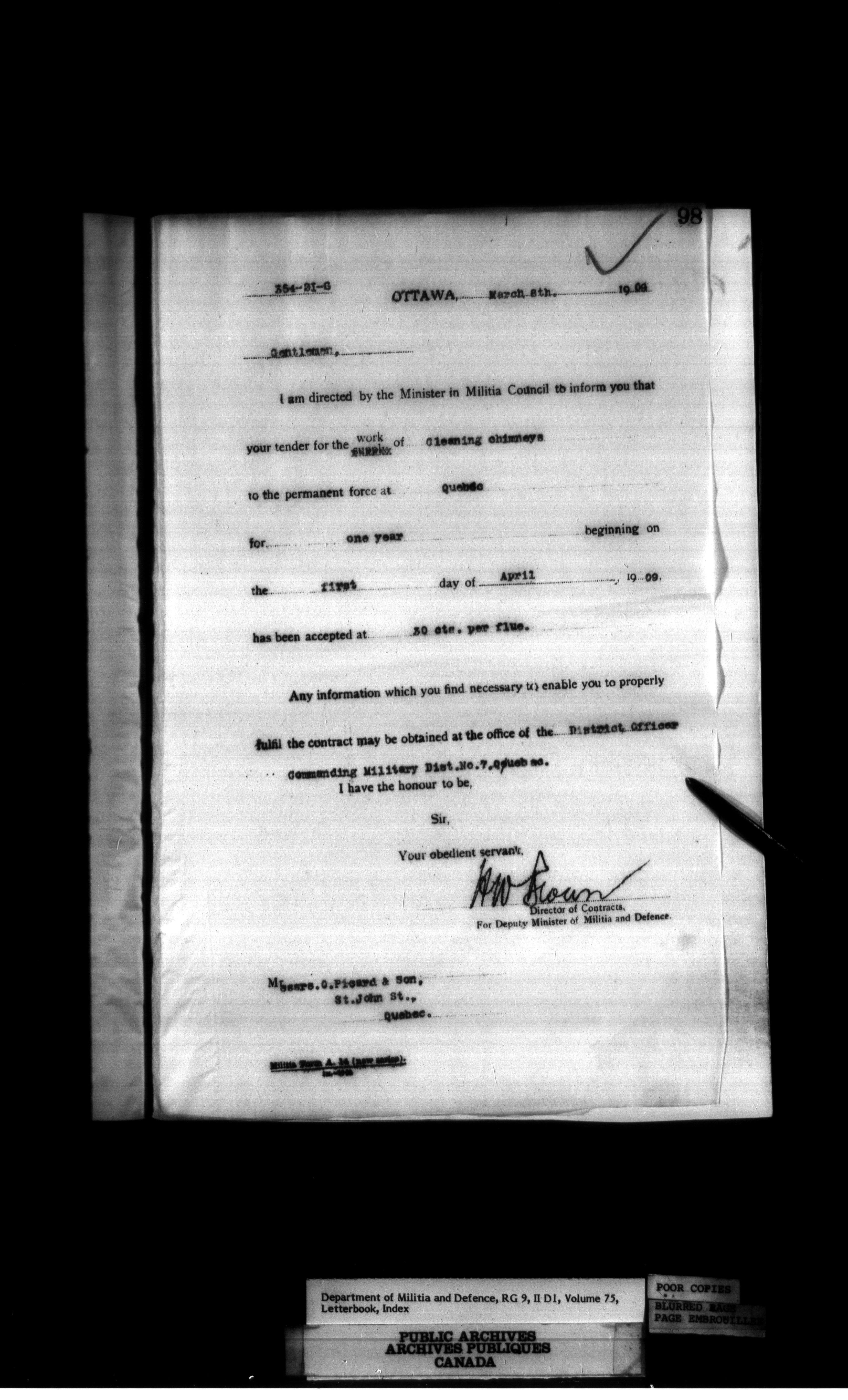 Department of Militia and Defence : Contracts Branch letterbooks, 1895-1912 - 413