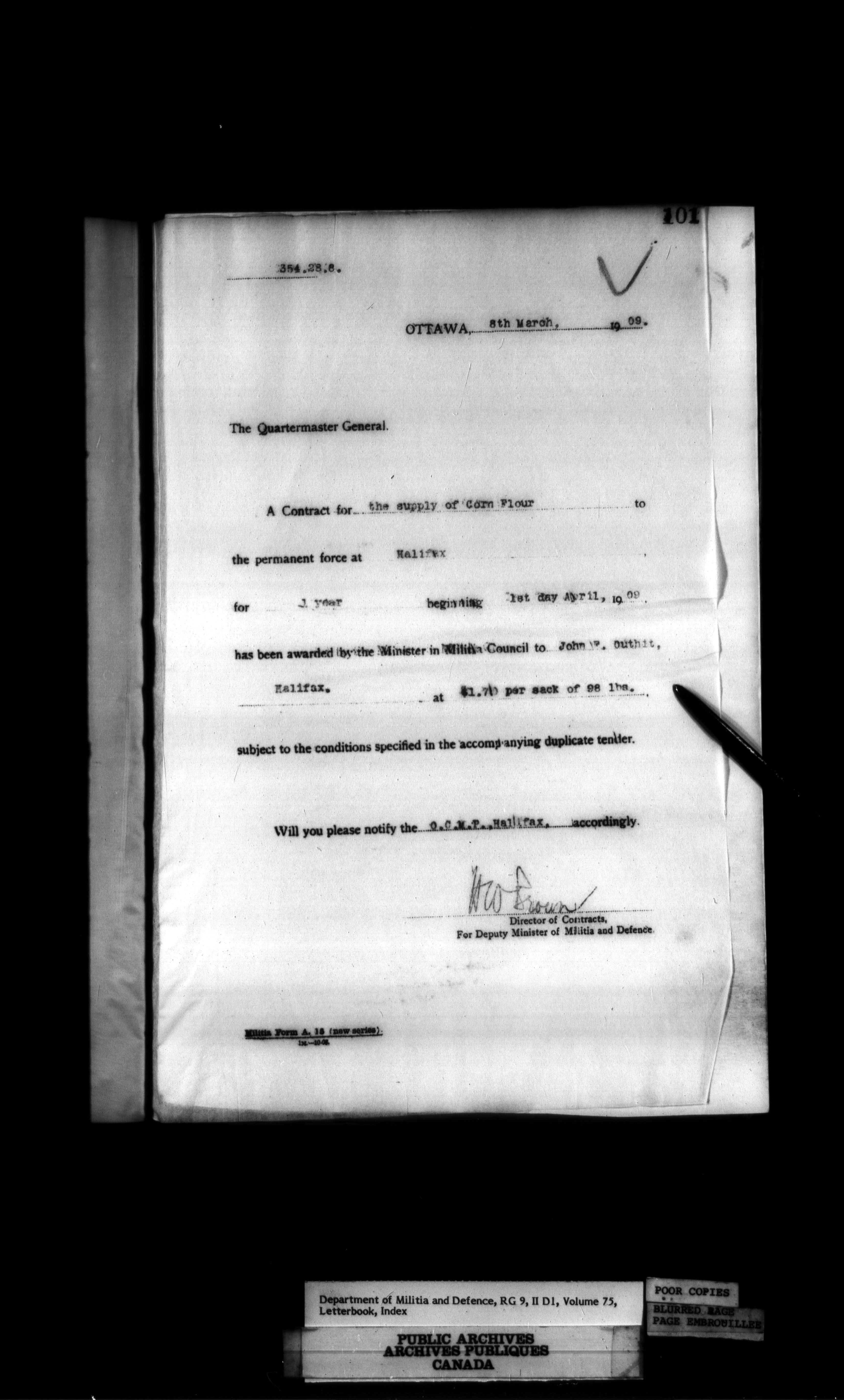 Department of Militia and Defence : Contracts Branch letterbooks, 1895-1912 - 413