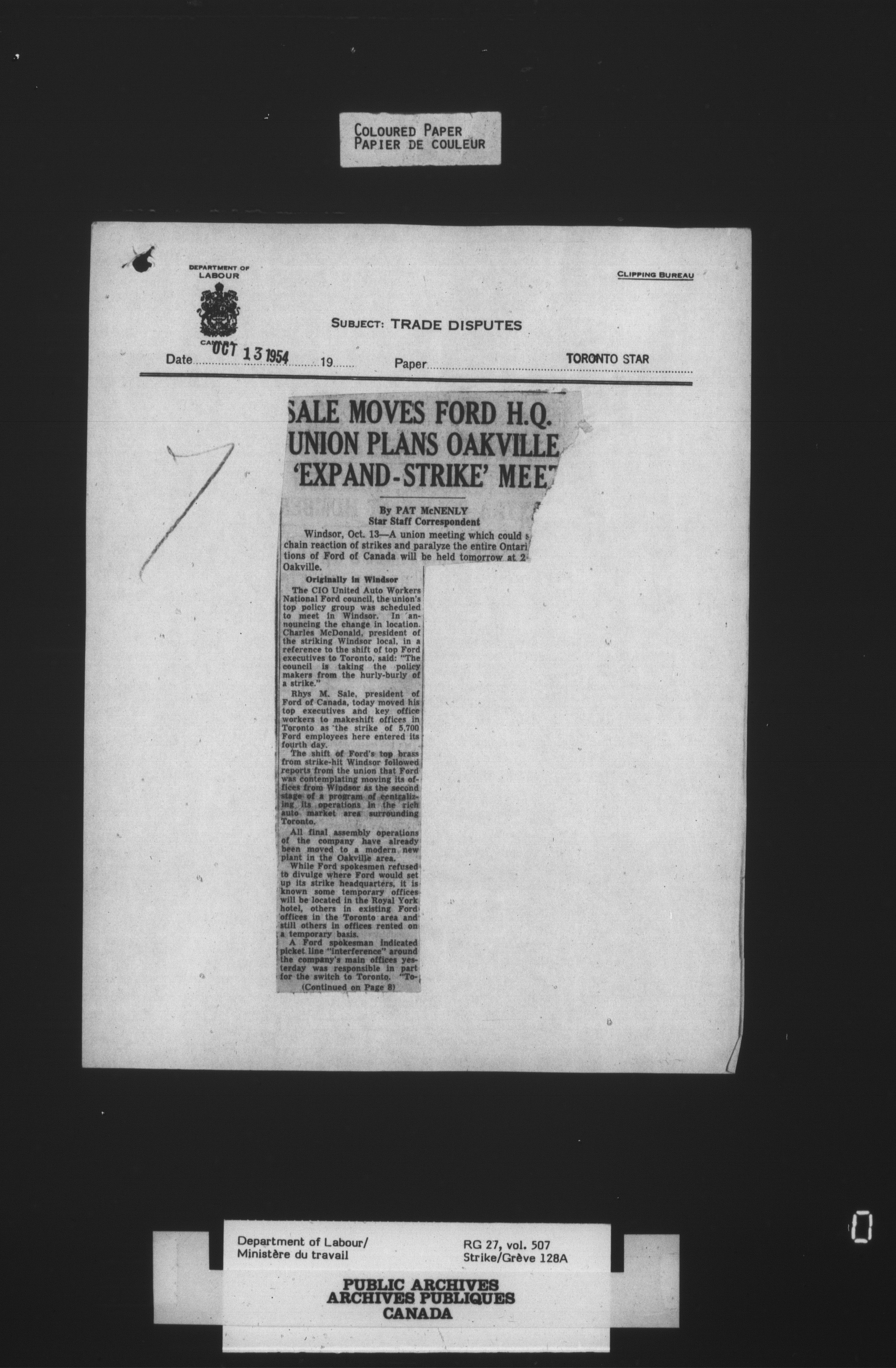 Department of Labour, Economics and Research Branch : Strikes and lockout files - 4130