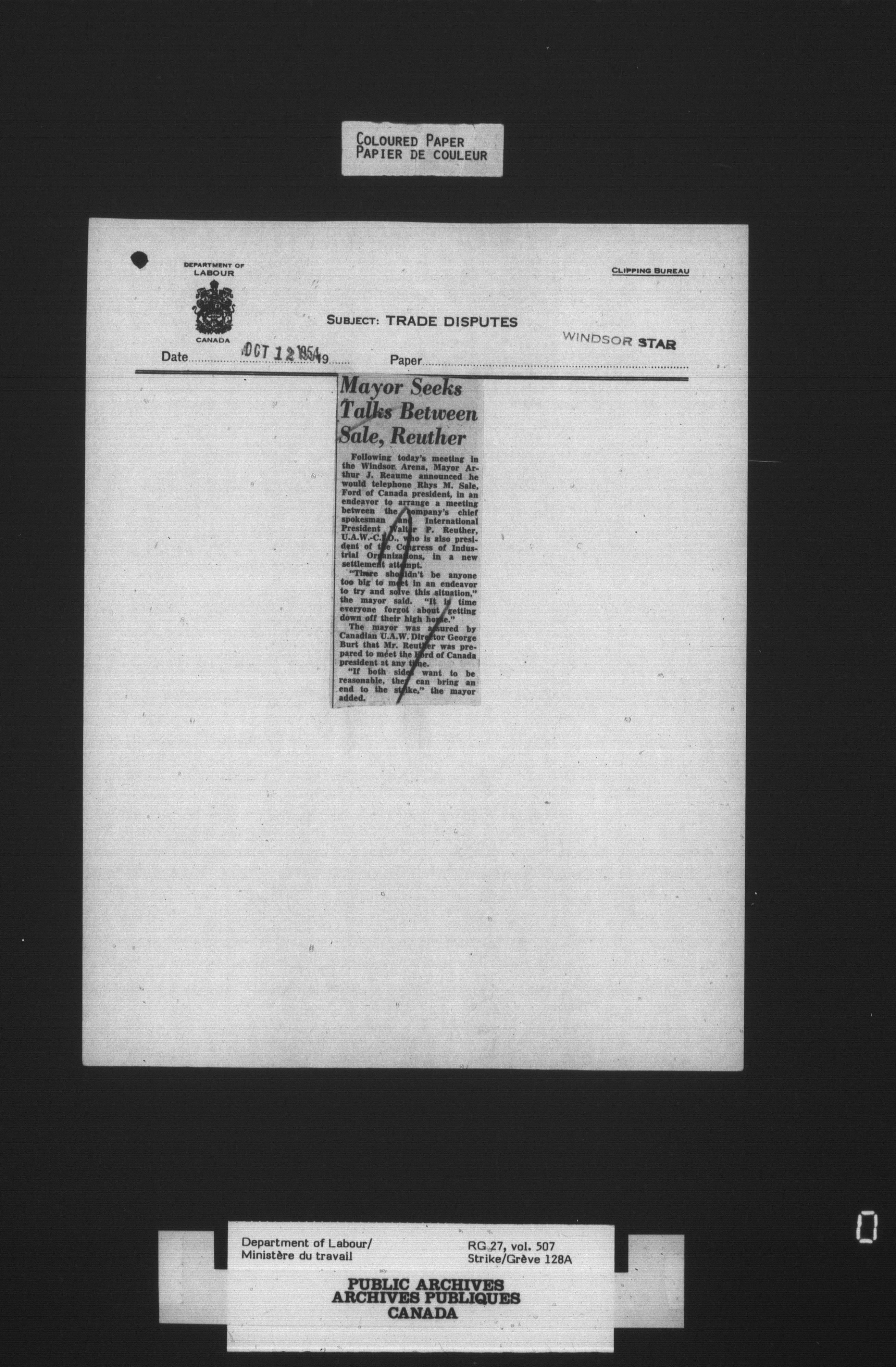 Department of Labour, Economics and Research Branch : Strikes and lockout files - 4130