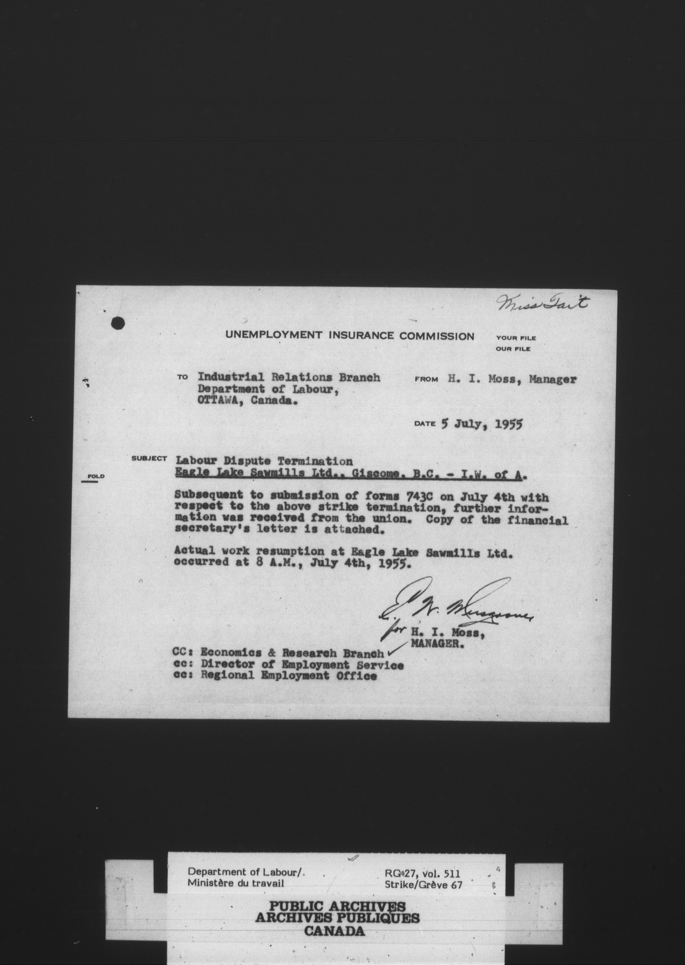 Department of Labour, Economics and Research Branch : Strikes and lockout files - 4131