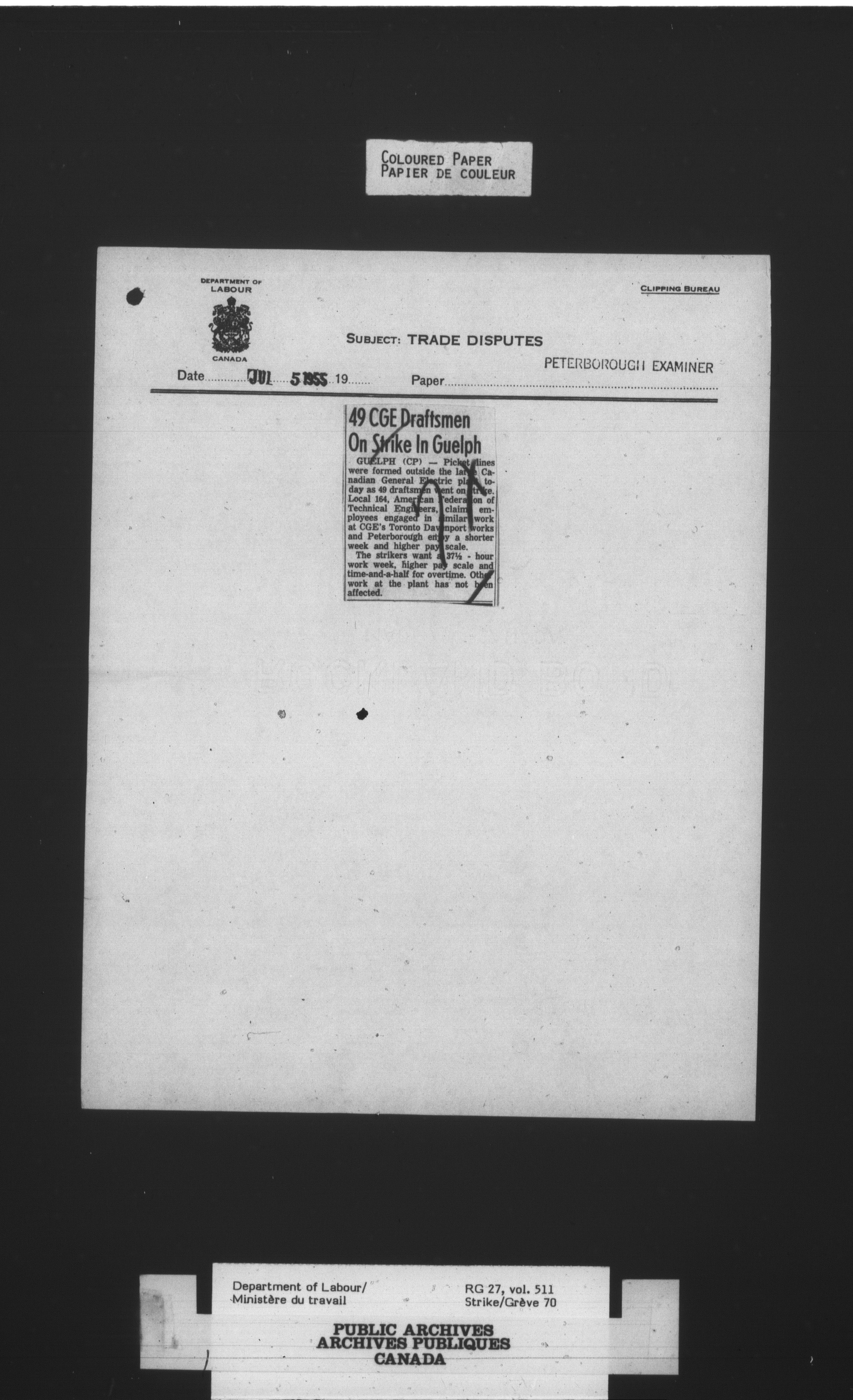 Department of Labour, Economics and Research Branch : Strikes and lockout files - 4131