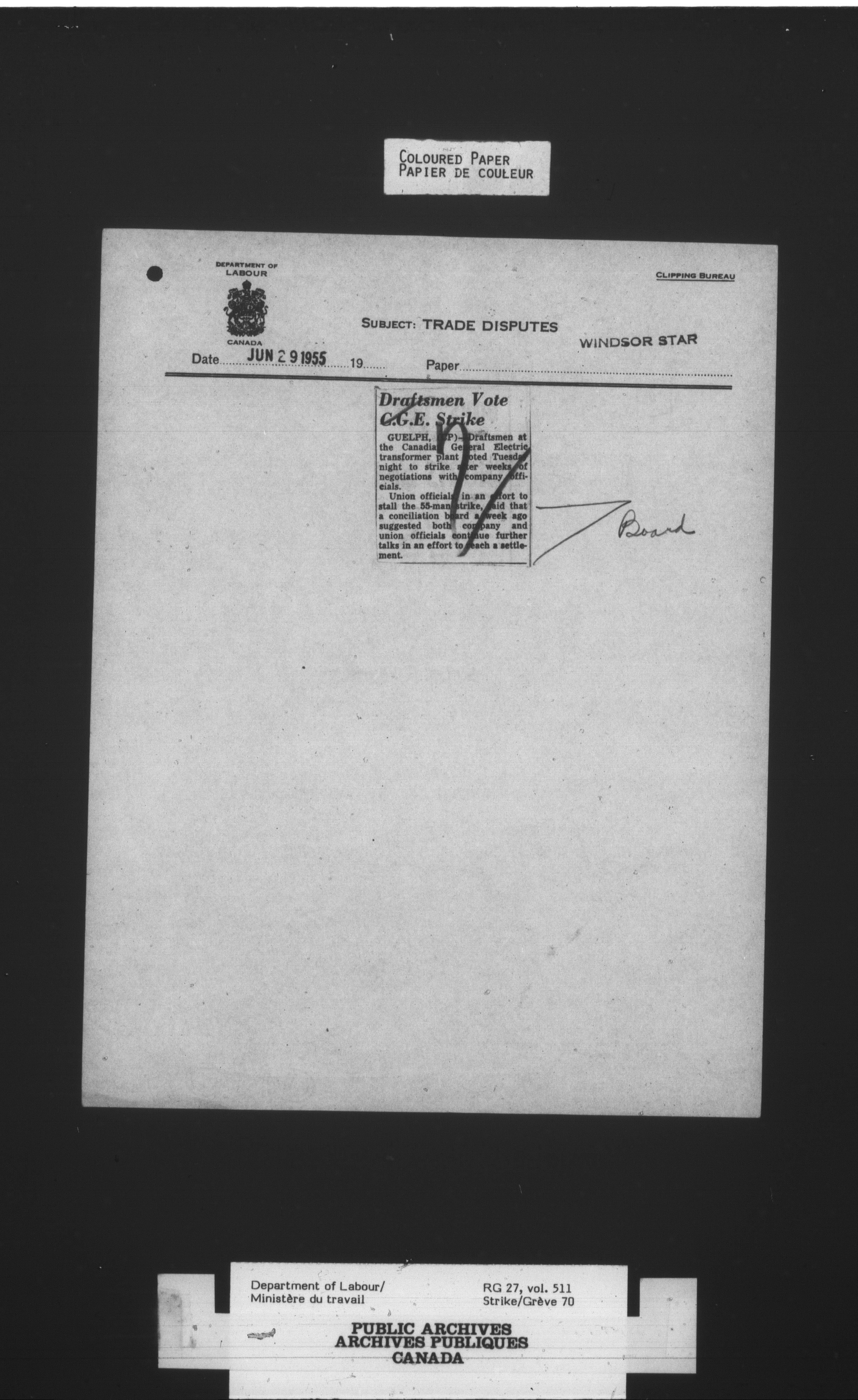 Department of Labour, Economics and Research Branch : Strikes and lockout files - 4131