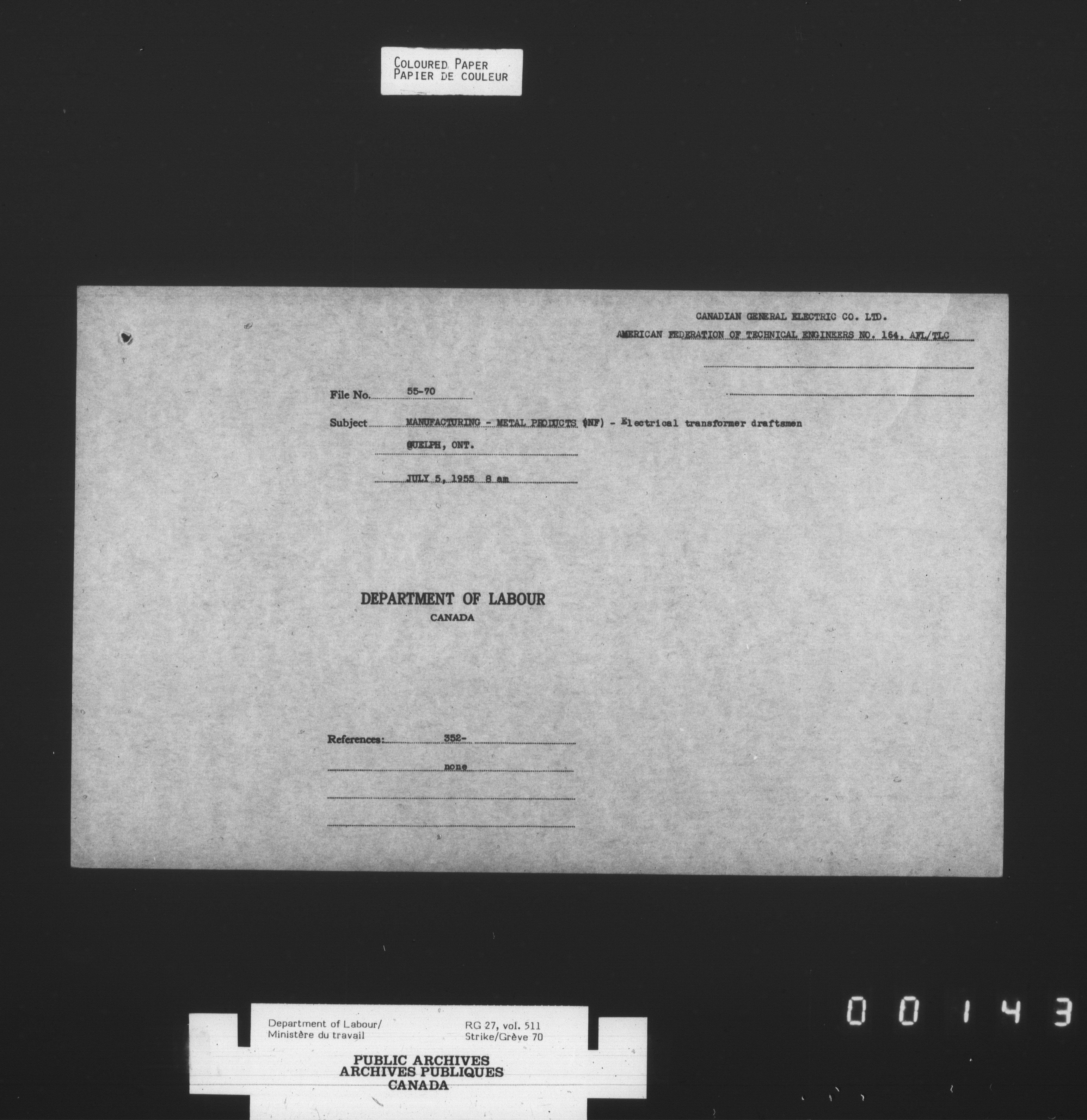 Department of Labour, Economics and Research Branch : Strikes and lockout files - 4131