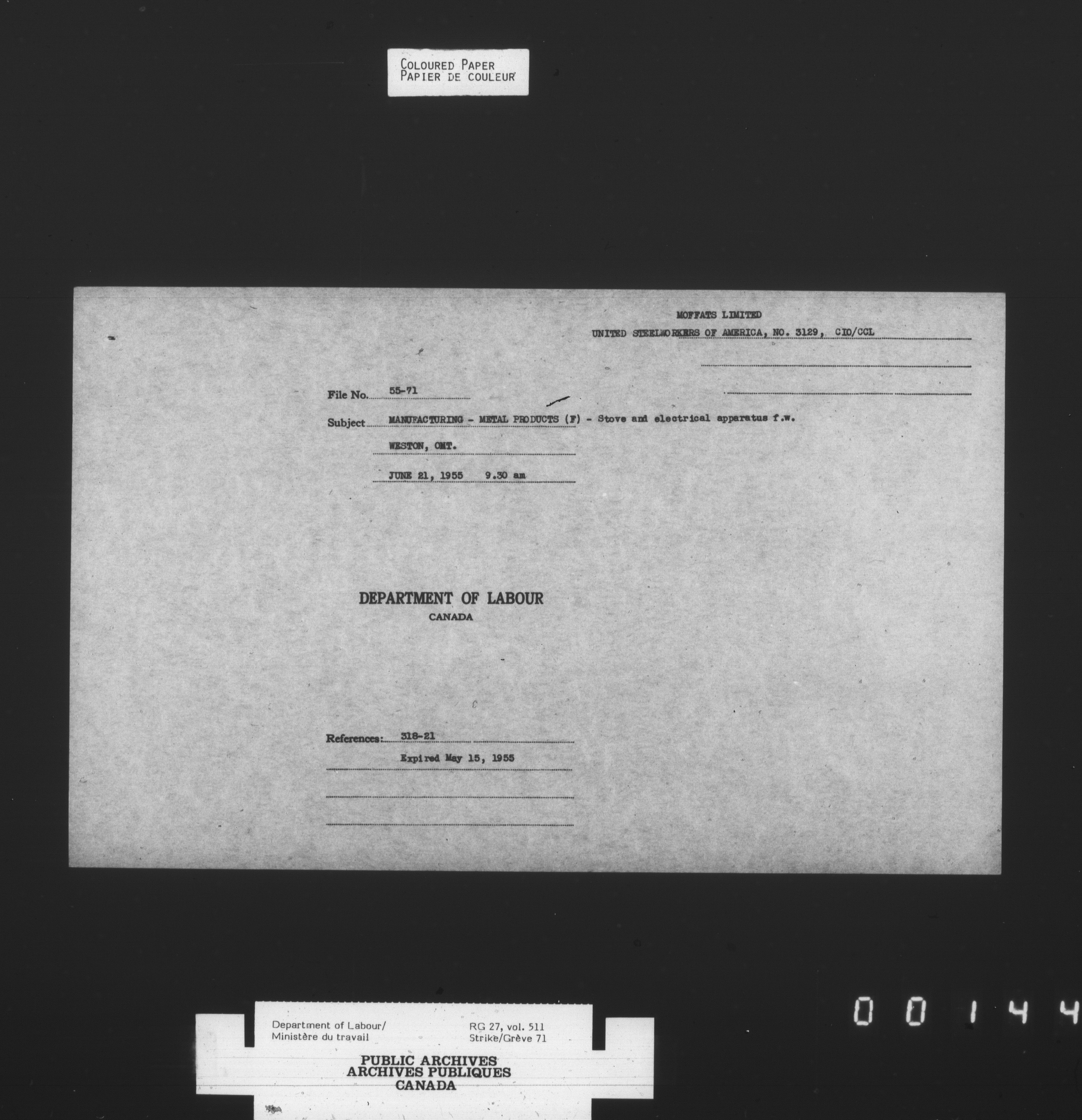 Department of Labour, Economics and Research Branch : Strikes and lockout files - 4131