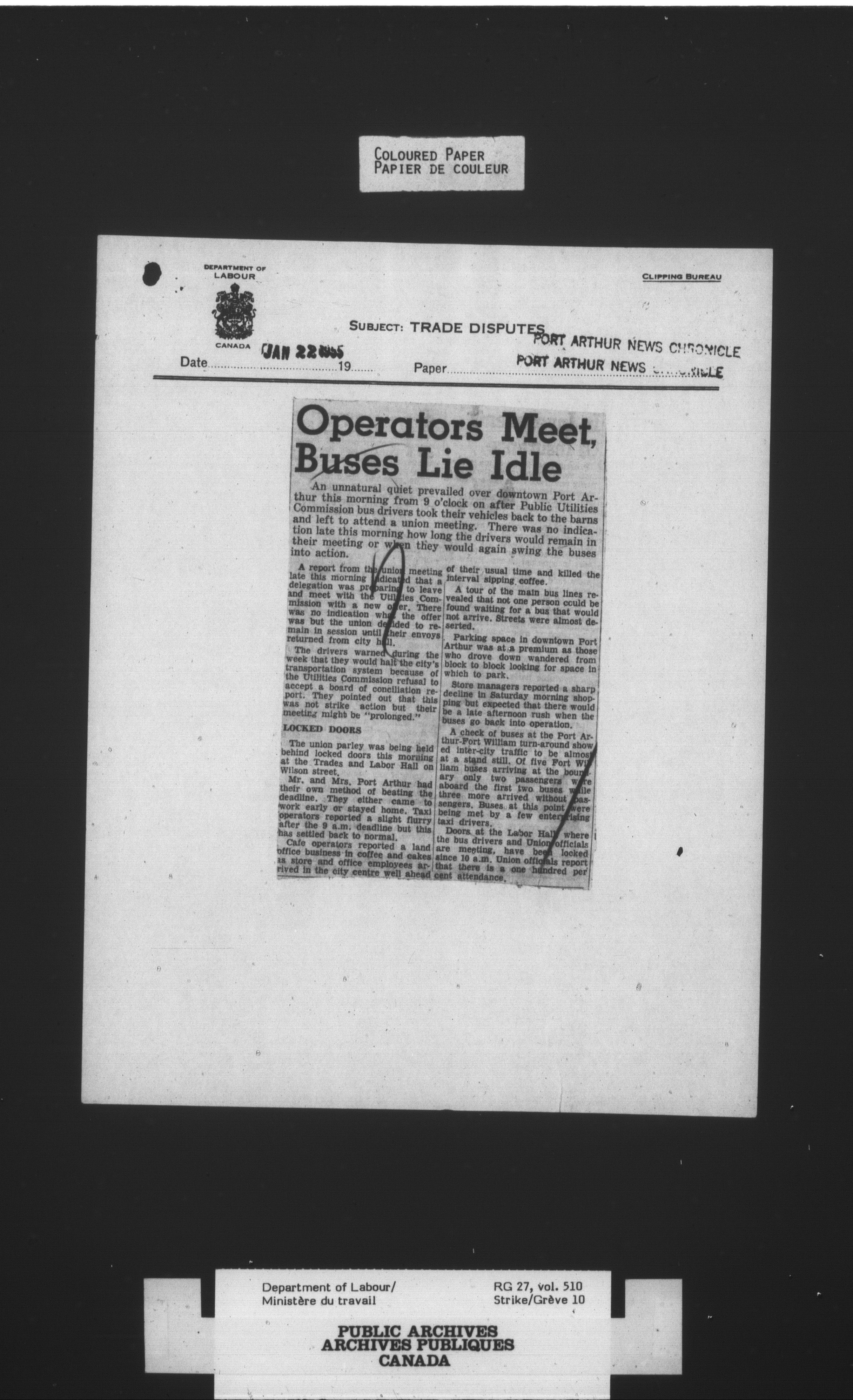 Department of Labour, Economics and Research Branch : Strikes and lockout files - 4131