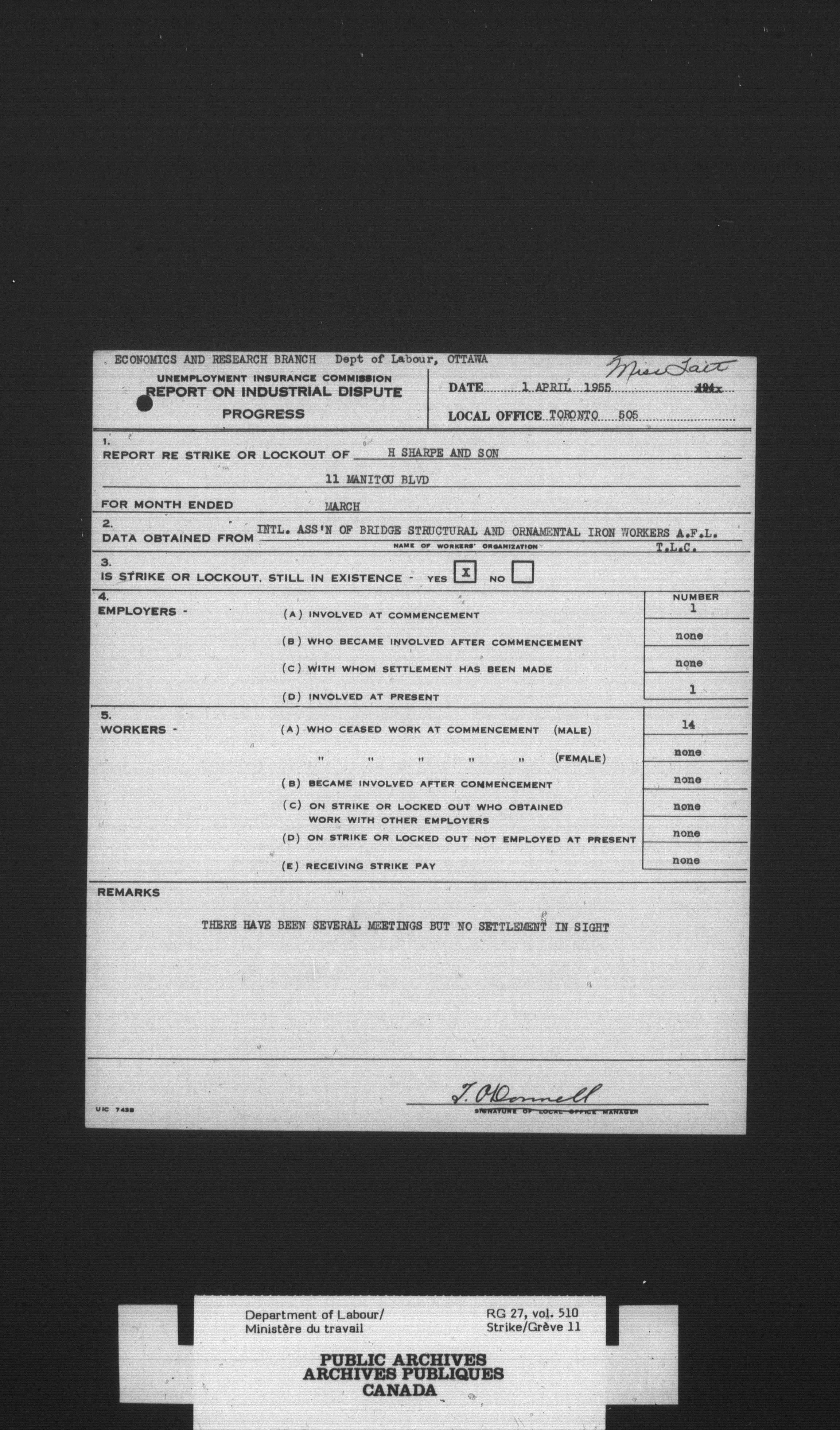 Department of Labour, Economics and Research Branch : Strikes and lockout files - 4131