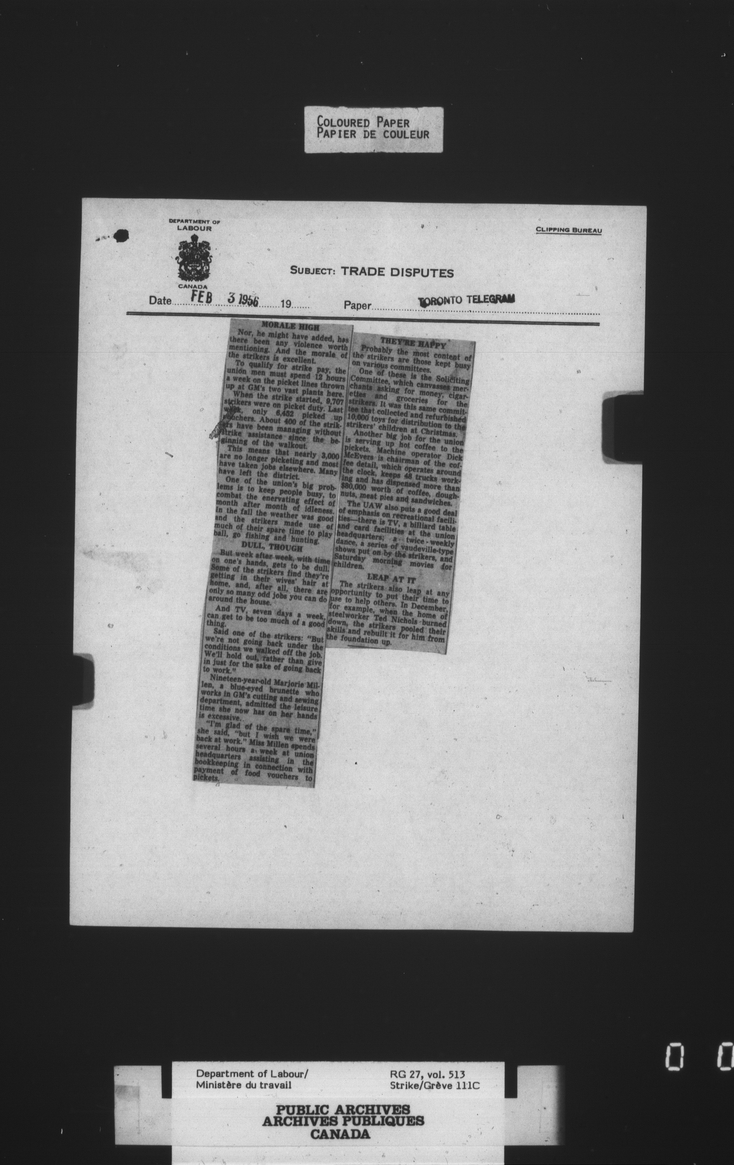 Department of Labour, Economics and Research Branch : Strikes and lockout files - 4132