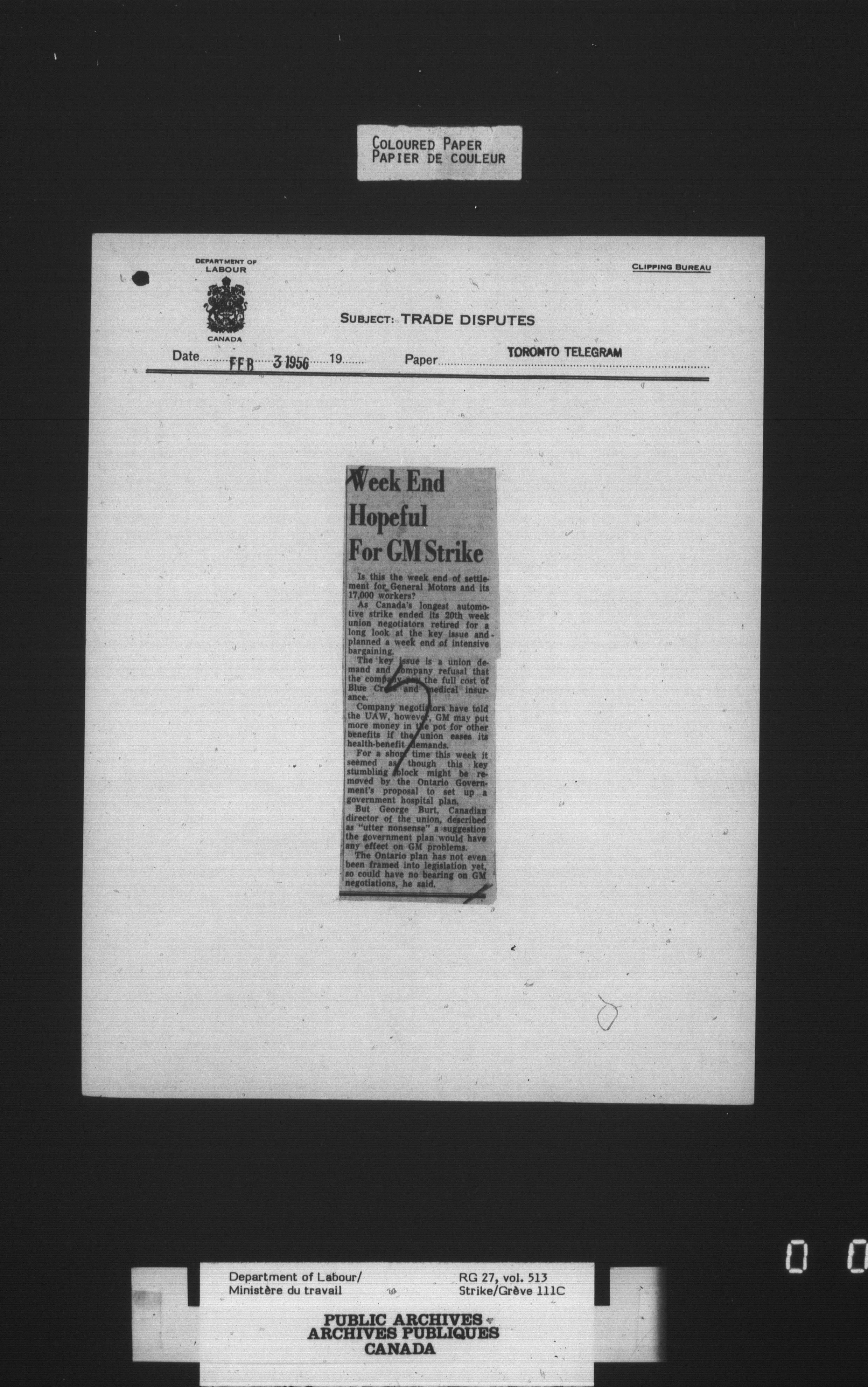 Department of Labour, Economics and Research Branch : Strikes and lockout files - 4132
