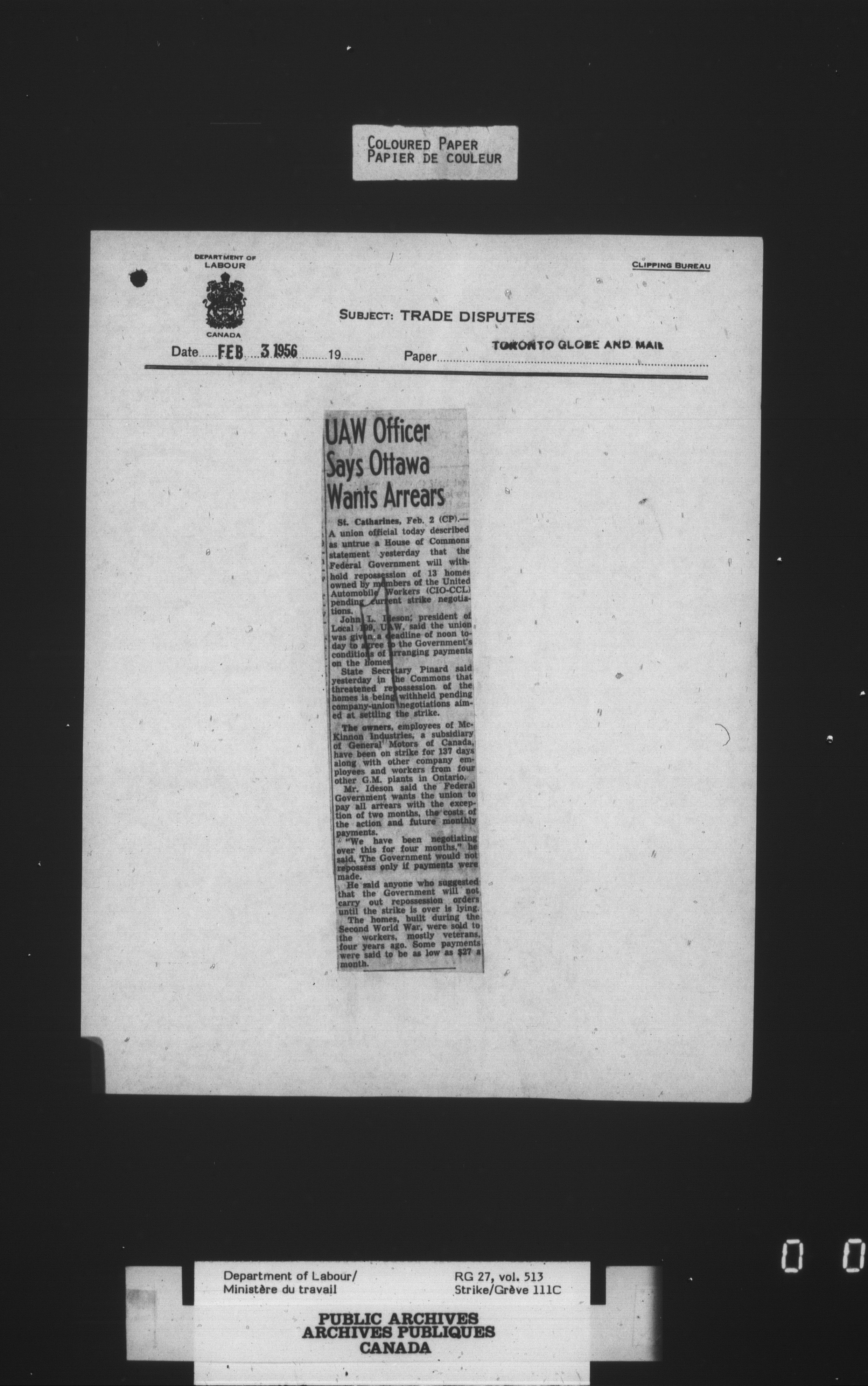 Department of Labour, Economics and Research Branch : Strikes and lockout files - 4132