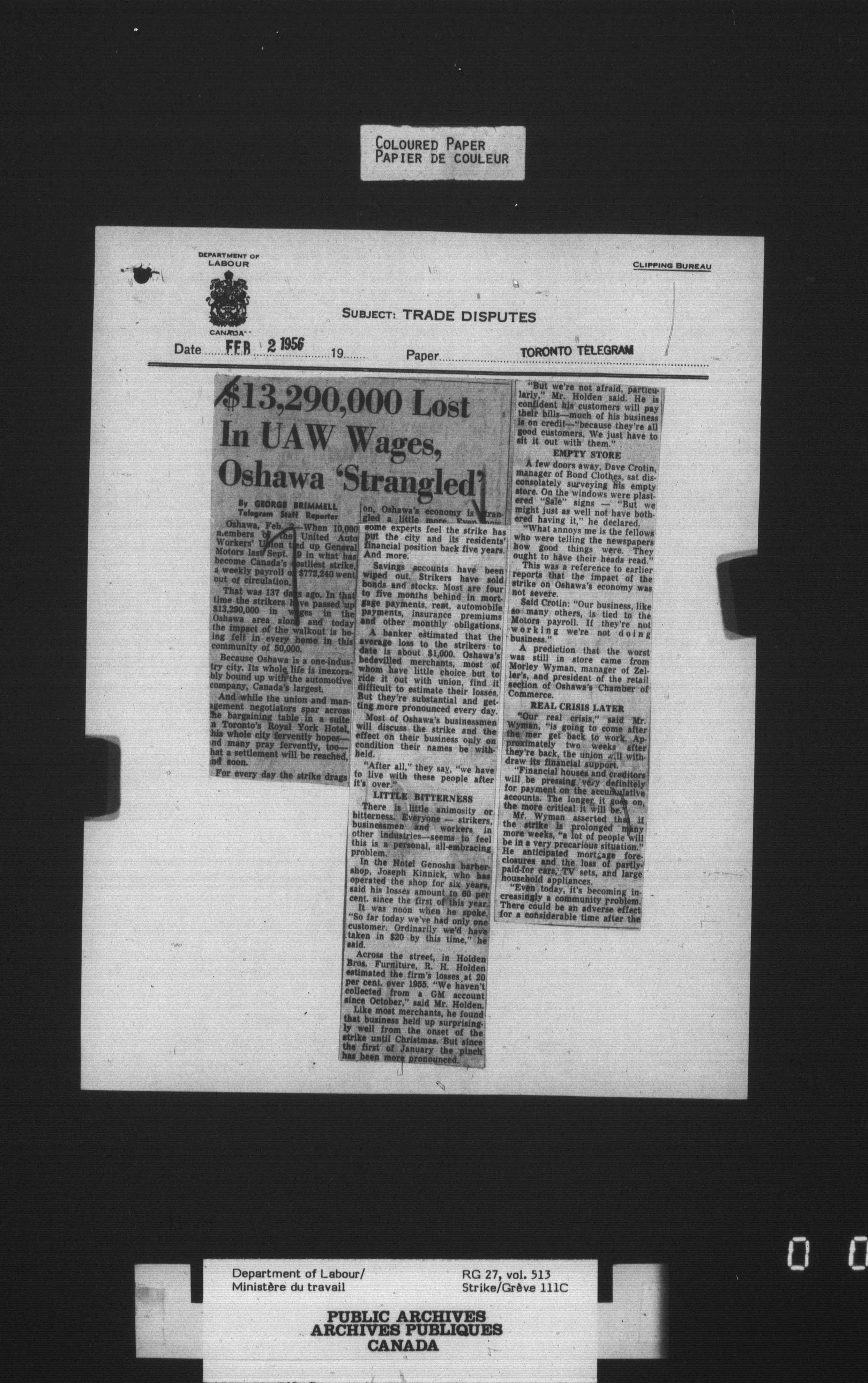 Department of Labour, Economics and Research Branch : Strikes and lockout files - 4132