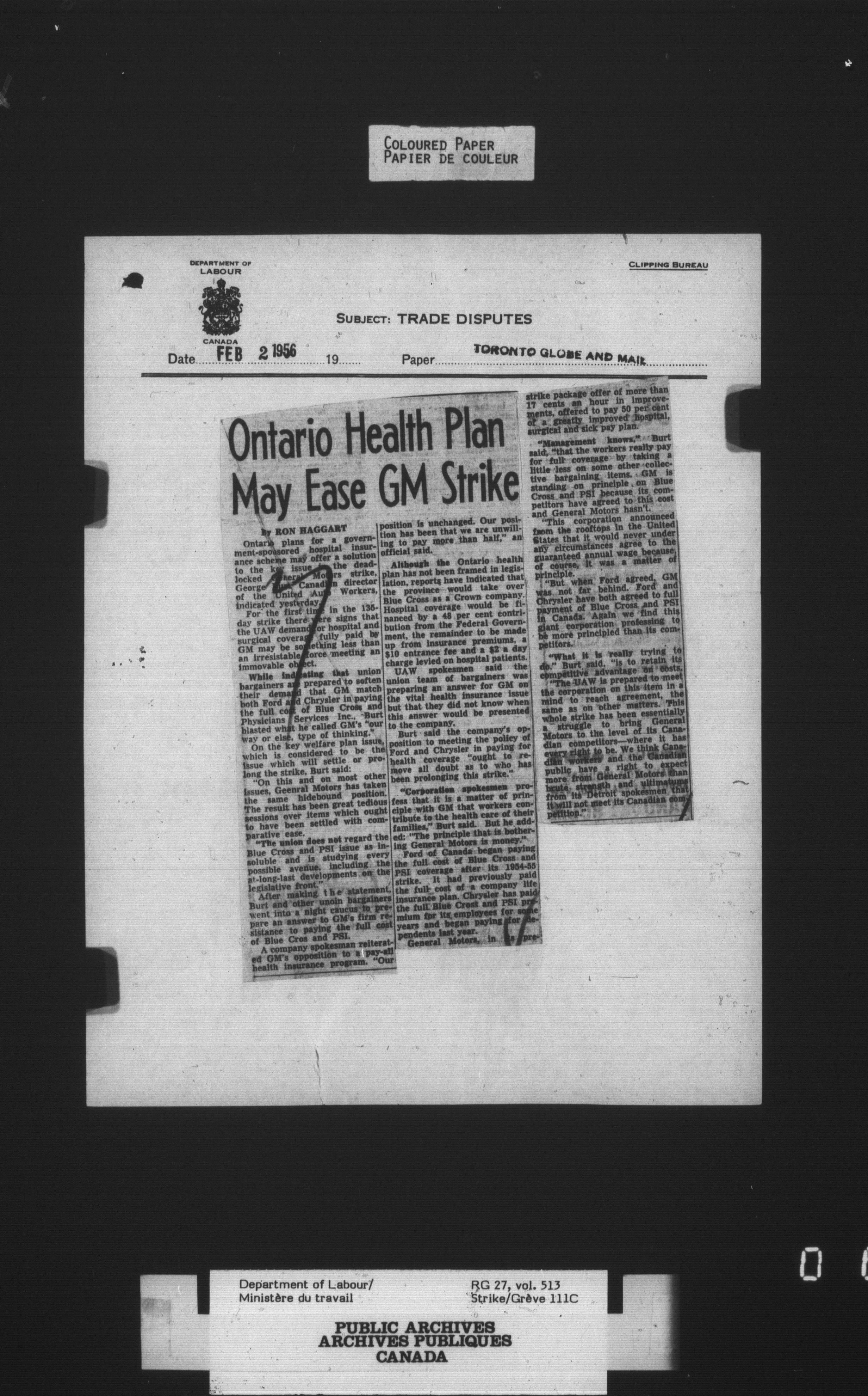 Department of Labour, Economics and Research Branch : Strikes and lockout files - 4132